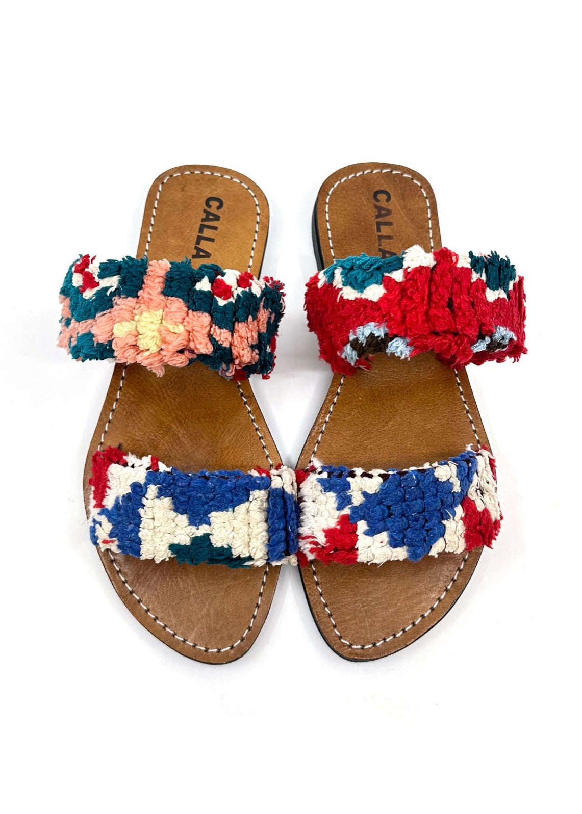 The CALLA Hali Sandal is a 2 strap sandal made of Boucharouite rug. The plush rug wraps around the interior making them the softest and most comfortable sandals ever! They suit all types of feet.