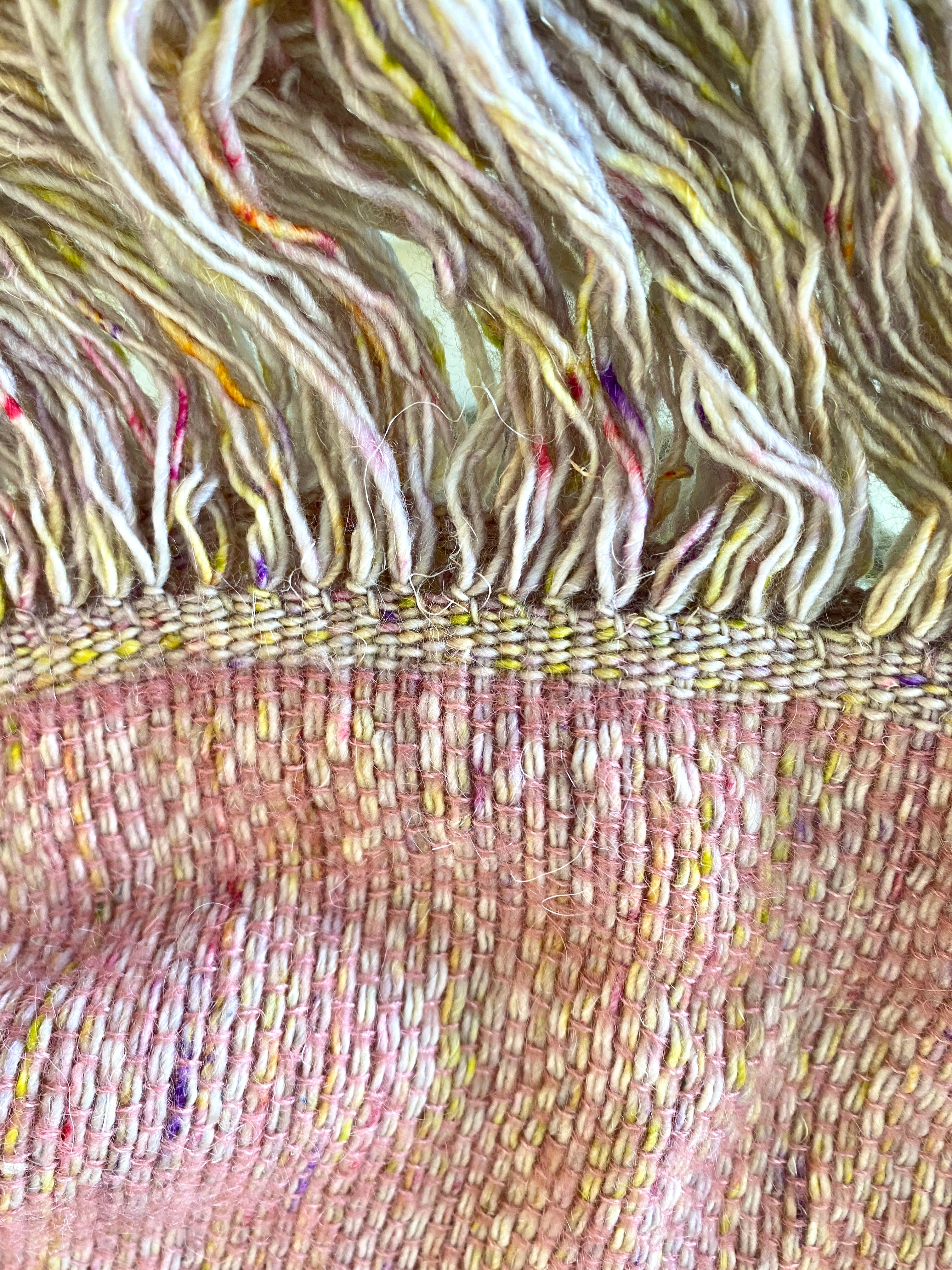 Hand Knitted Hand Dyed Silk Merino Wool w/ Pink Mohair Weft Scarf