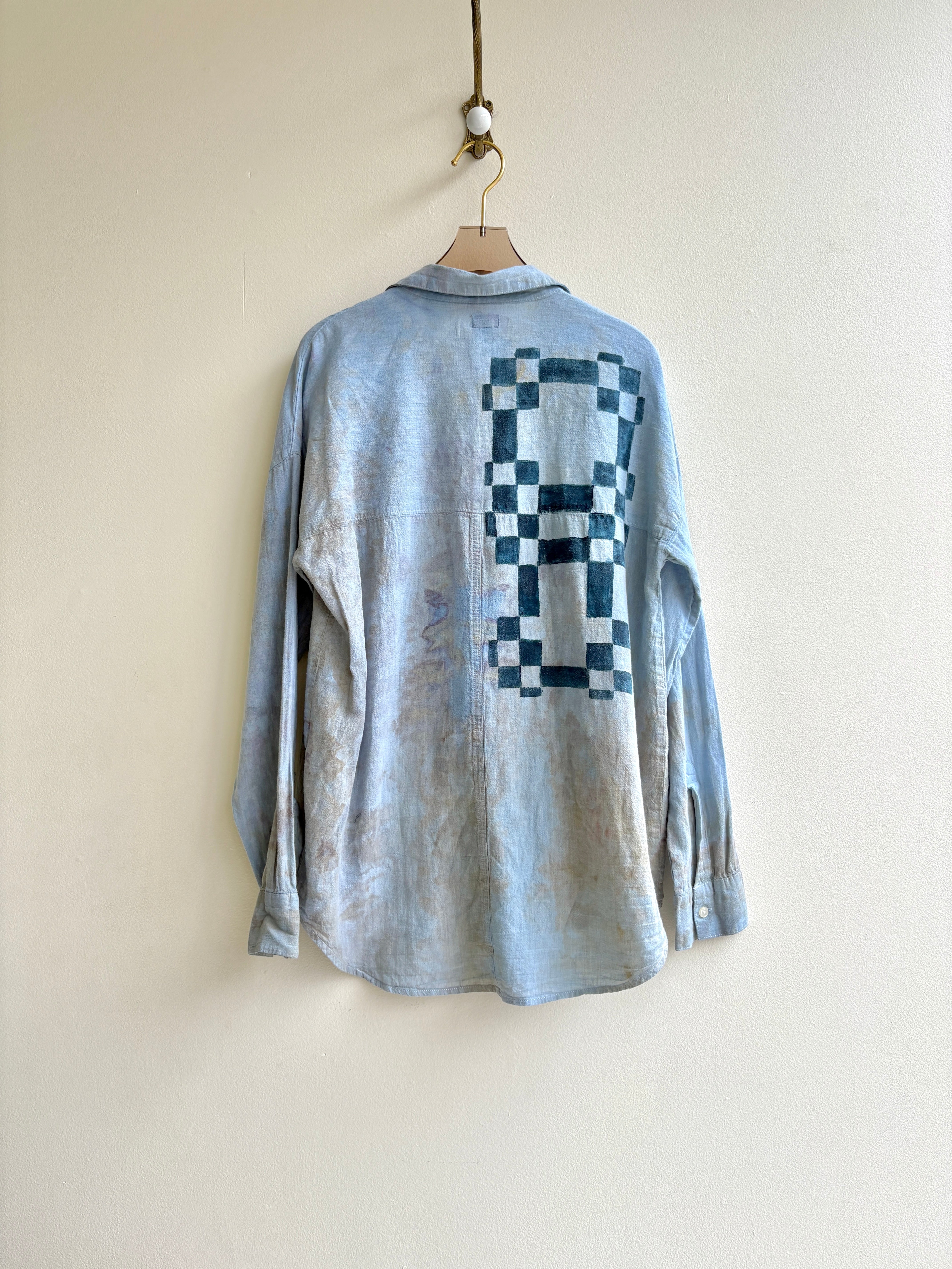 • Reworked vintage blue button-down shirt