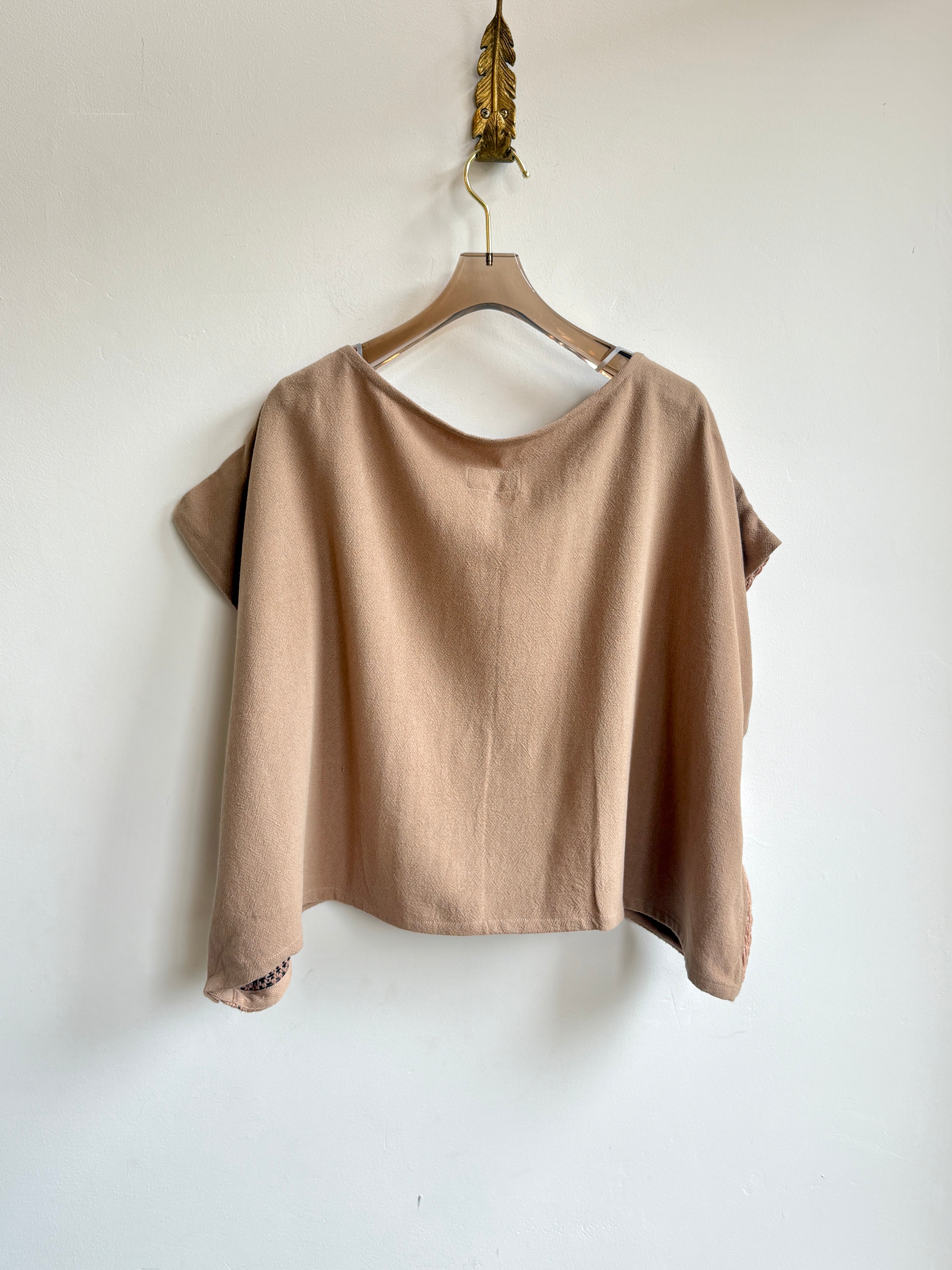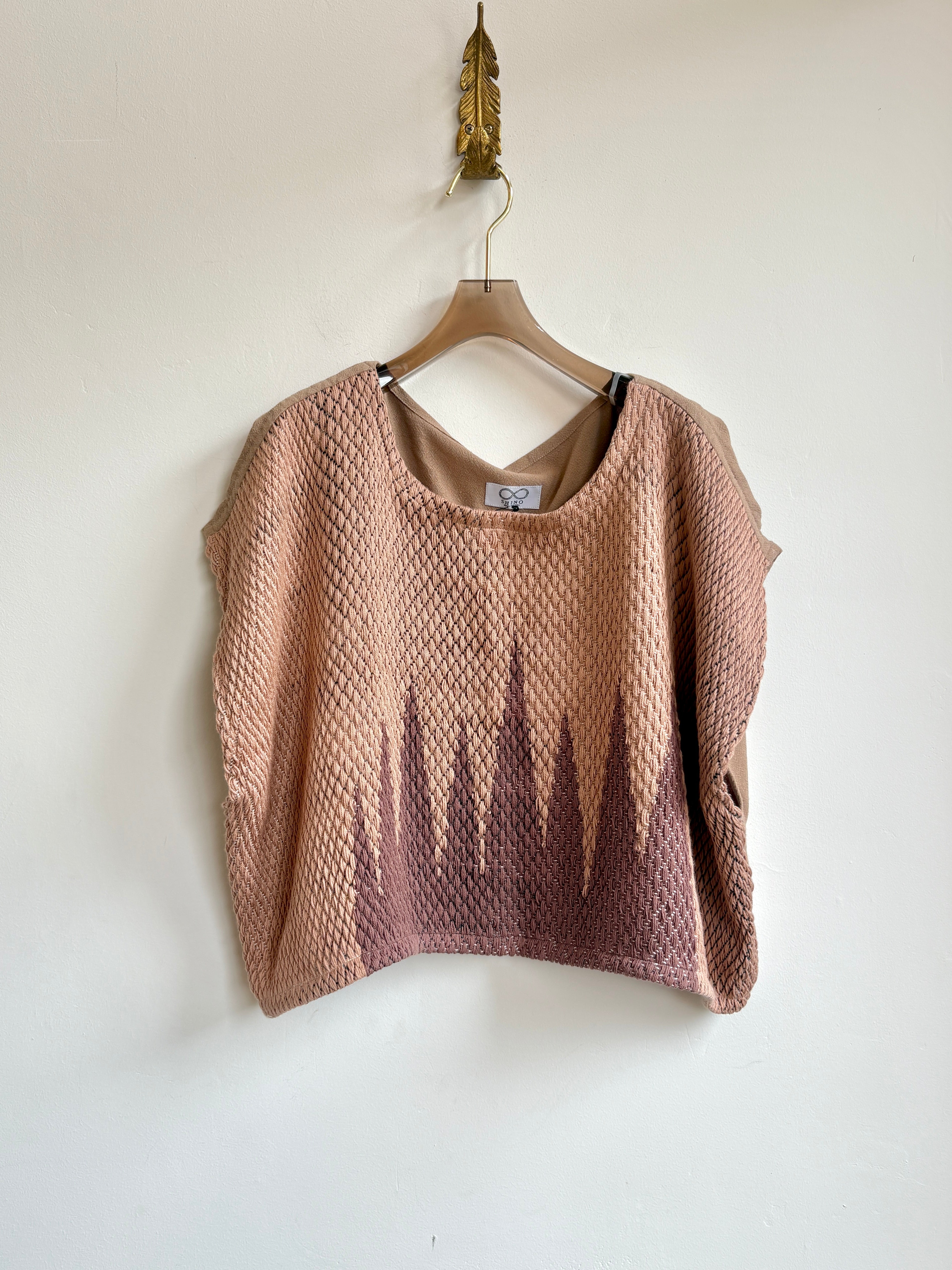 - Box top with handwoven front in shades of tan and amber & an tan lightweight back
