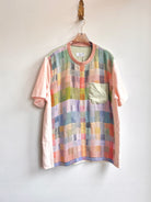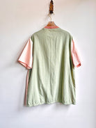 - Handwoven Front in multi-color with pink short sleeves and light sage back