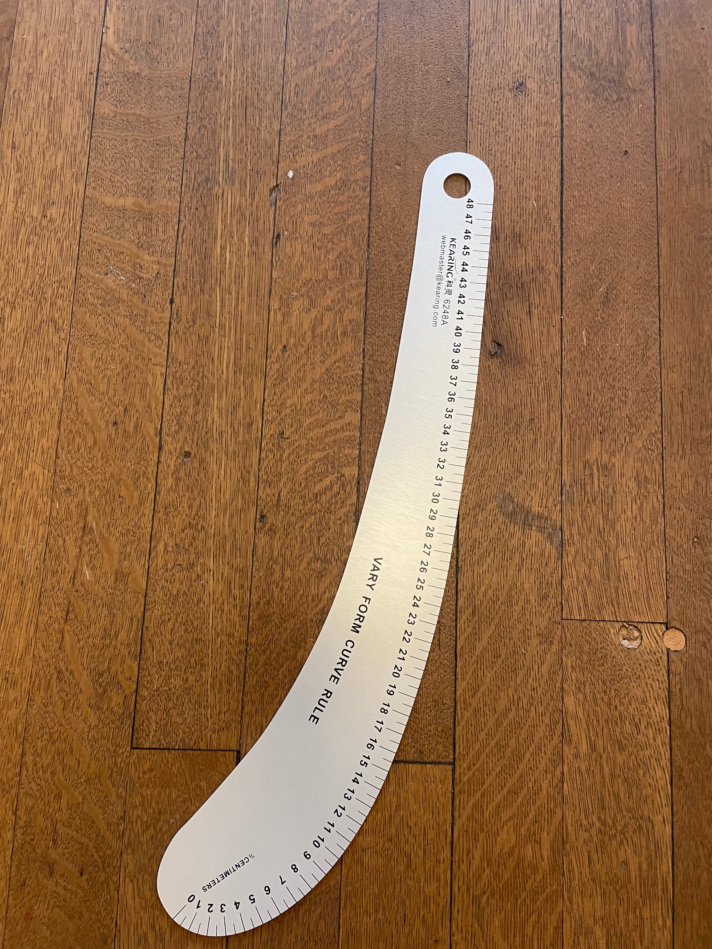 To use a hip curve ruler place it on your pattern paper, aligning the curve of your ruler with the desired hip curve in your pattern, slide the ruler along your marked points for smooth marking and fine tuning your pattern.
