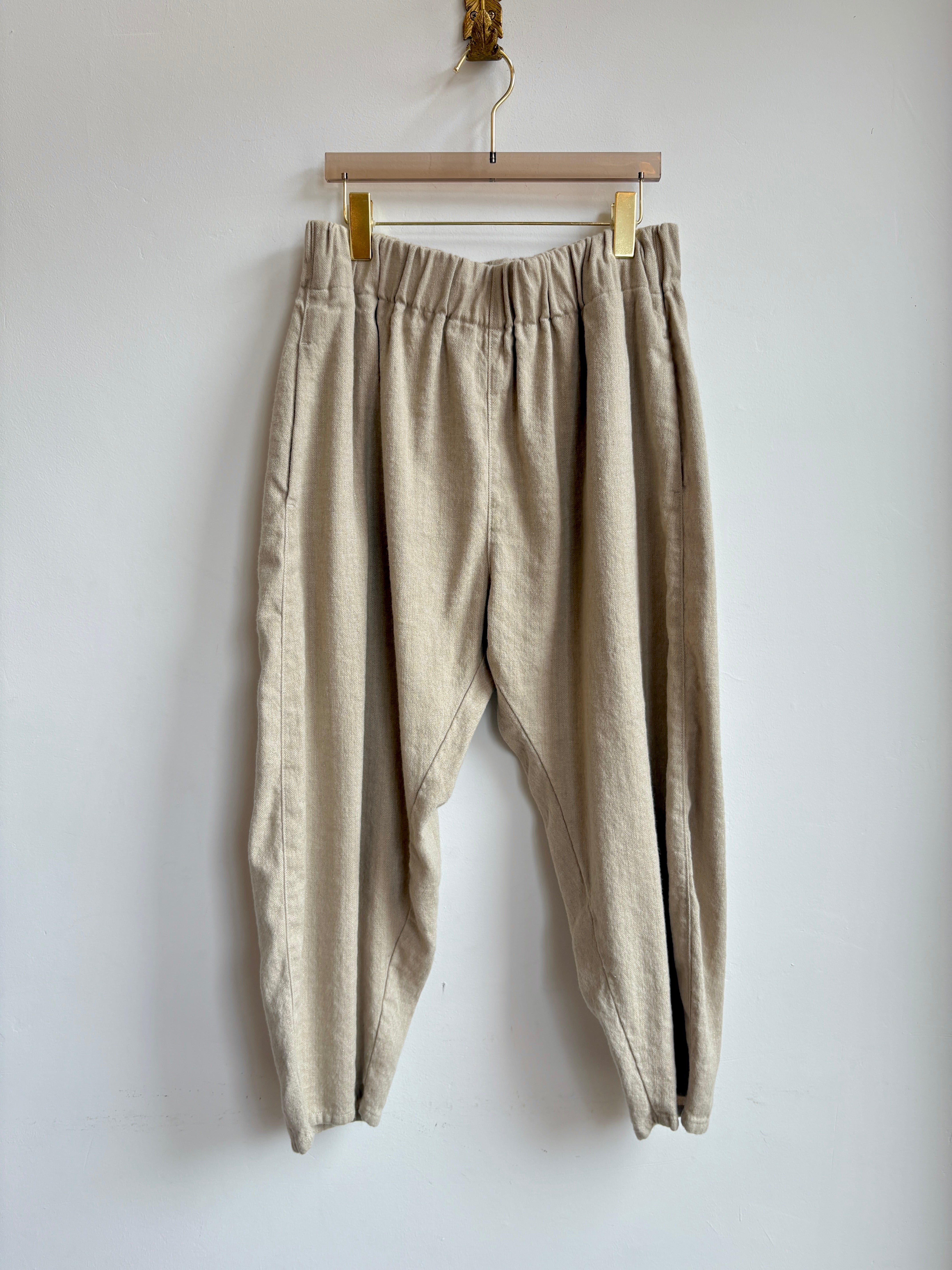 Khaki Herringbone Tweed Linen & Wool Studio Pant