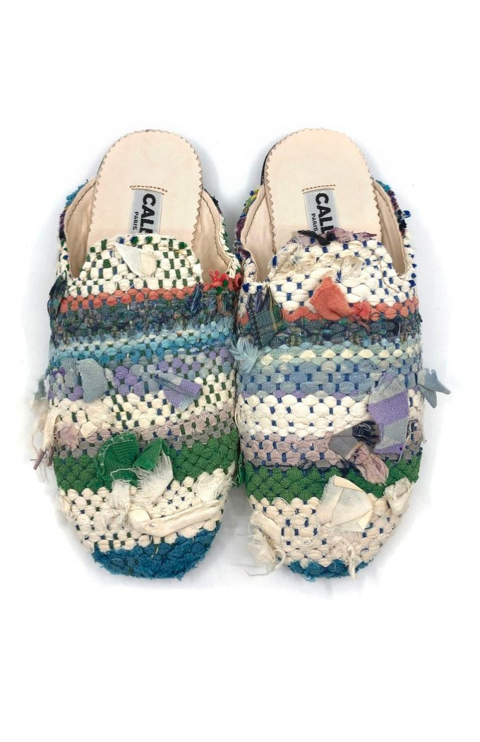 Kili Babouche “Cleo XV” Flats In Colors Blue, Green & Cream (Size 39)