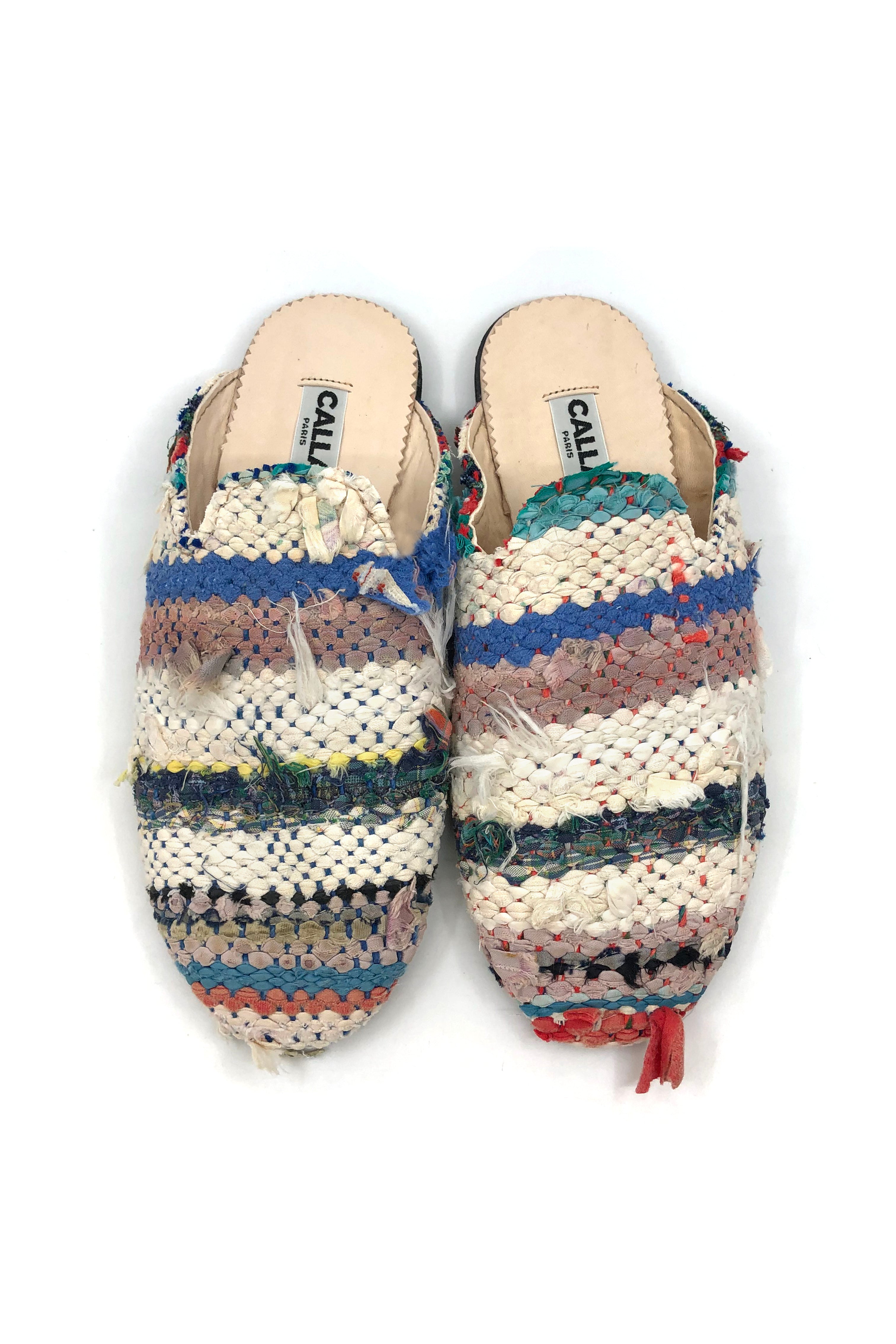 Kili Babouches are made from Kilim rugs that are woven with recycled textiles just like Boucharouite rugs. The flat weave feels just right for the warm weather. Have fun styling them!