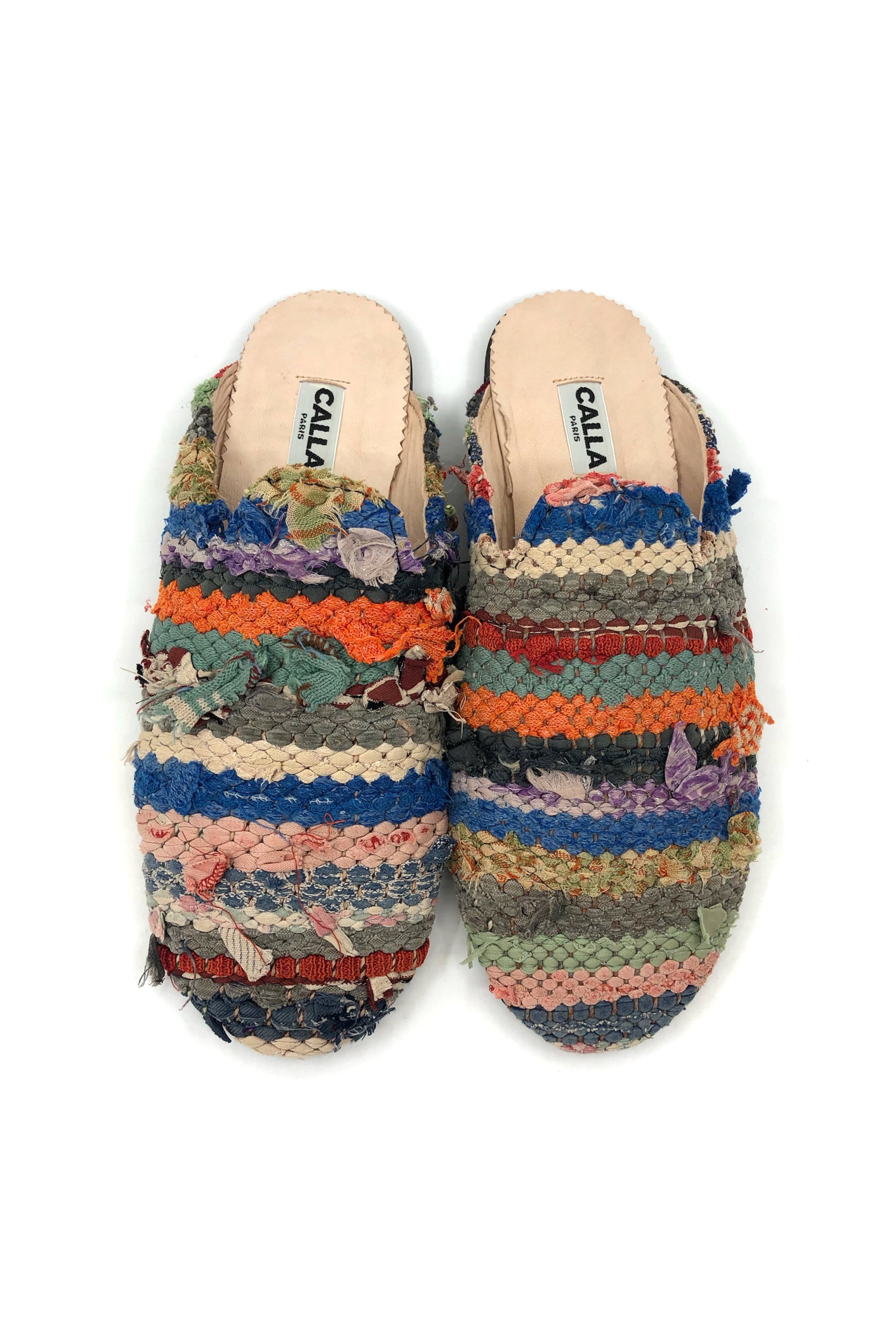 Kili Babouches are made from Kilim rugs that are woven with recycled textiles just like Boucharouite rugs. The flat weave feels just right for the warm weather. Have fun styling them!