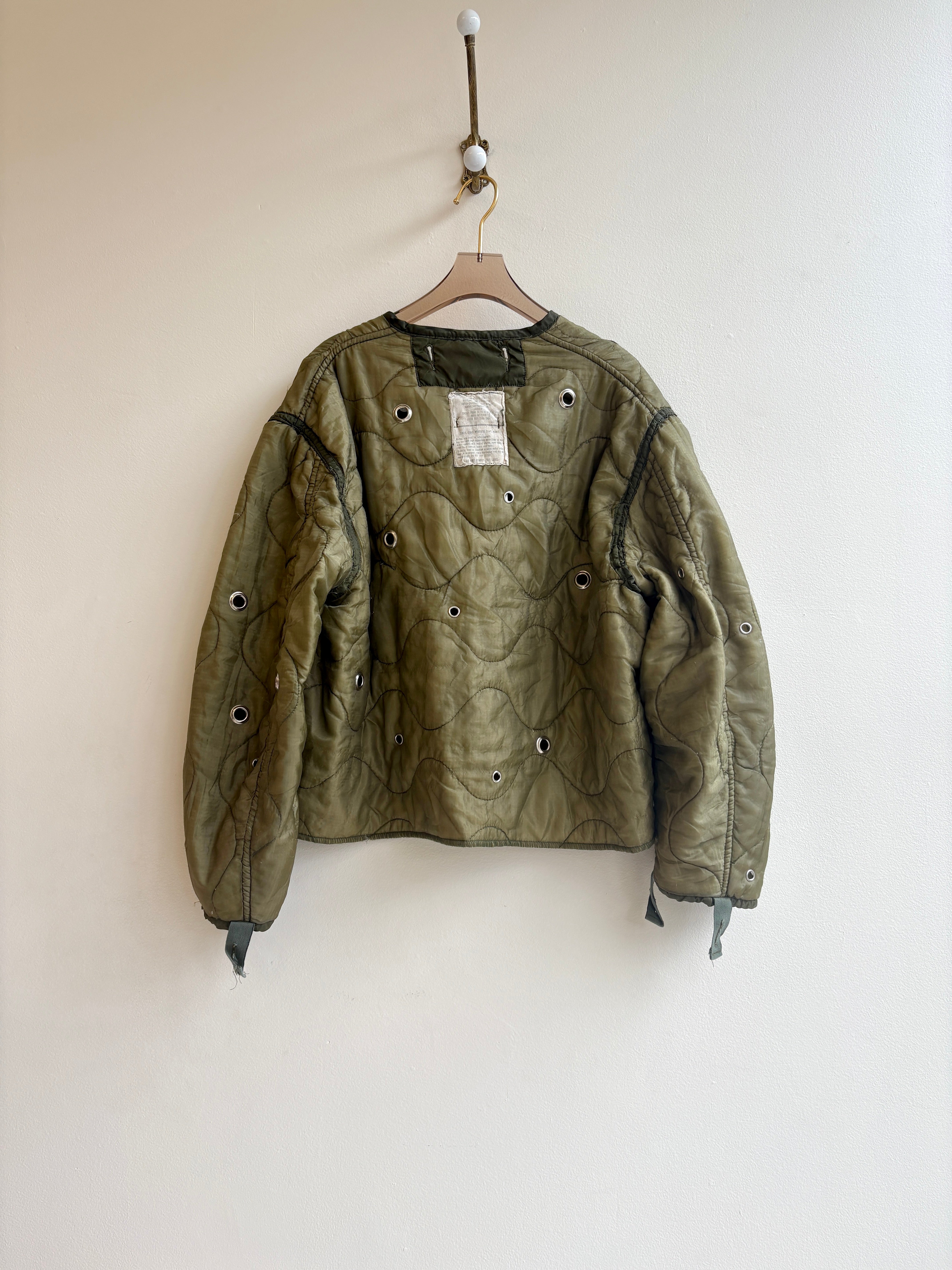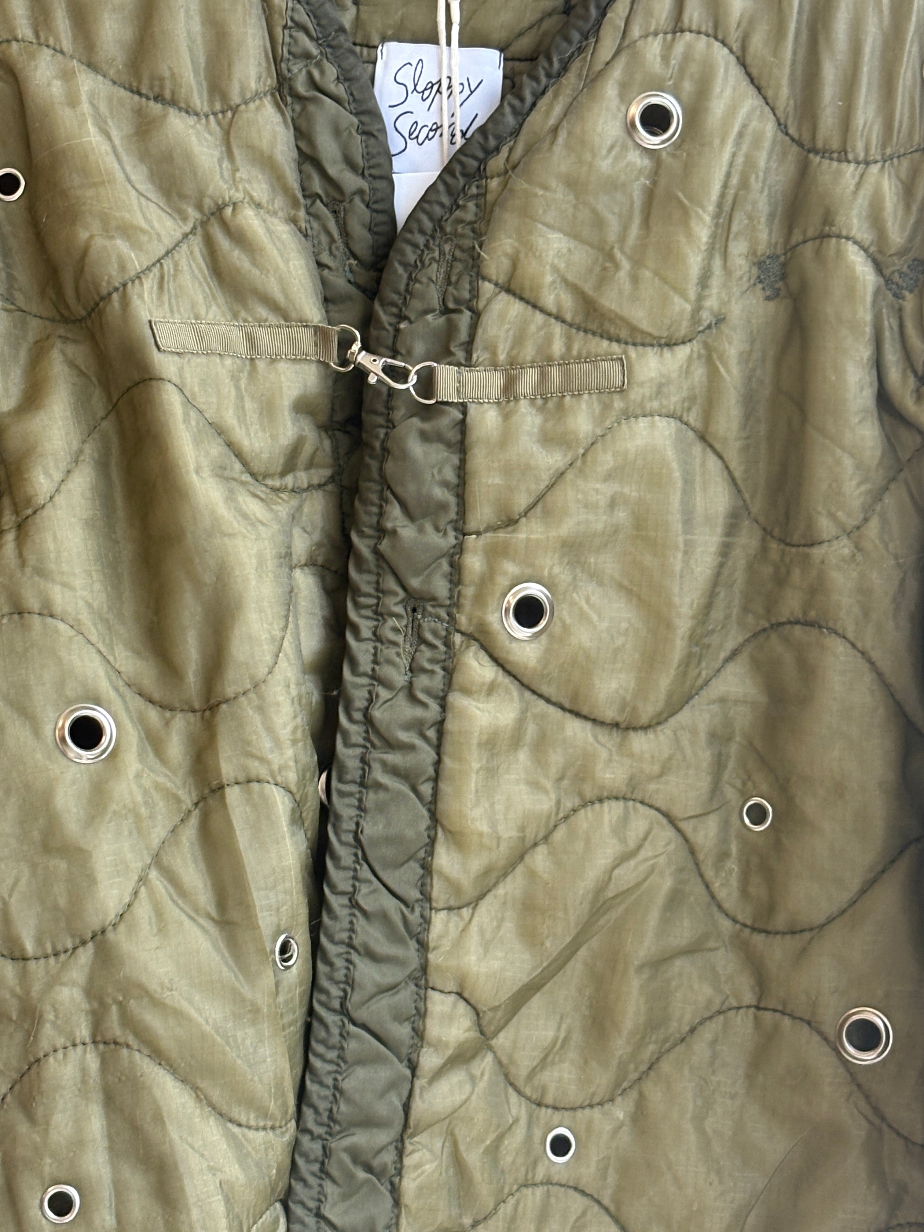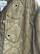 Light Olive Green Army Liner Quilted Coat w/ Silver Grommets & Clasp (Reworked)