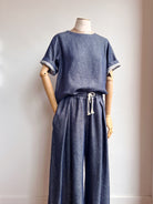 Our Wide-Leg Pants are the best of all possible worlds — as comfortable as a pair of pants can be, but also incredibly stylish. This pair is made from a drapey, lightweight, steel blue denim as a perfect everyday essential.