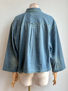 The denim pieces involved are different shades, and most or all are from other vintage garments. All of the wear and patina in the fabrics contributes to the unique character of the piece.