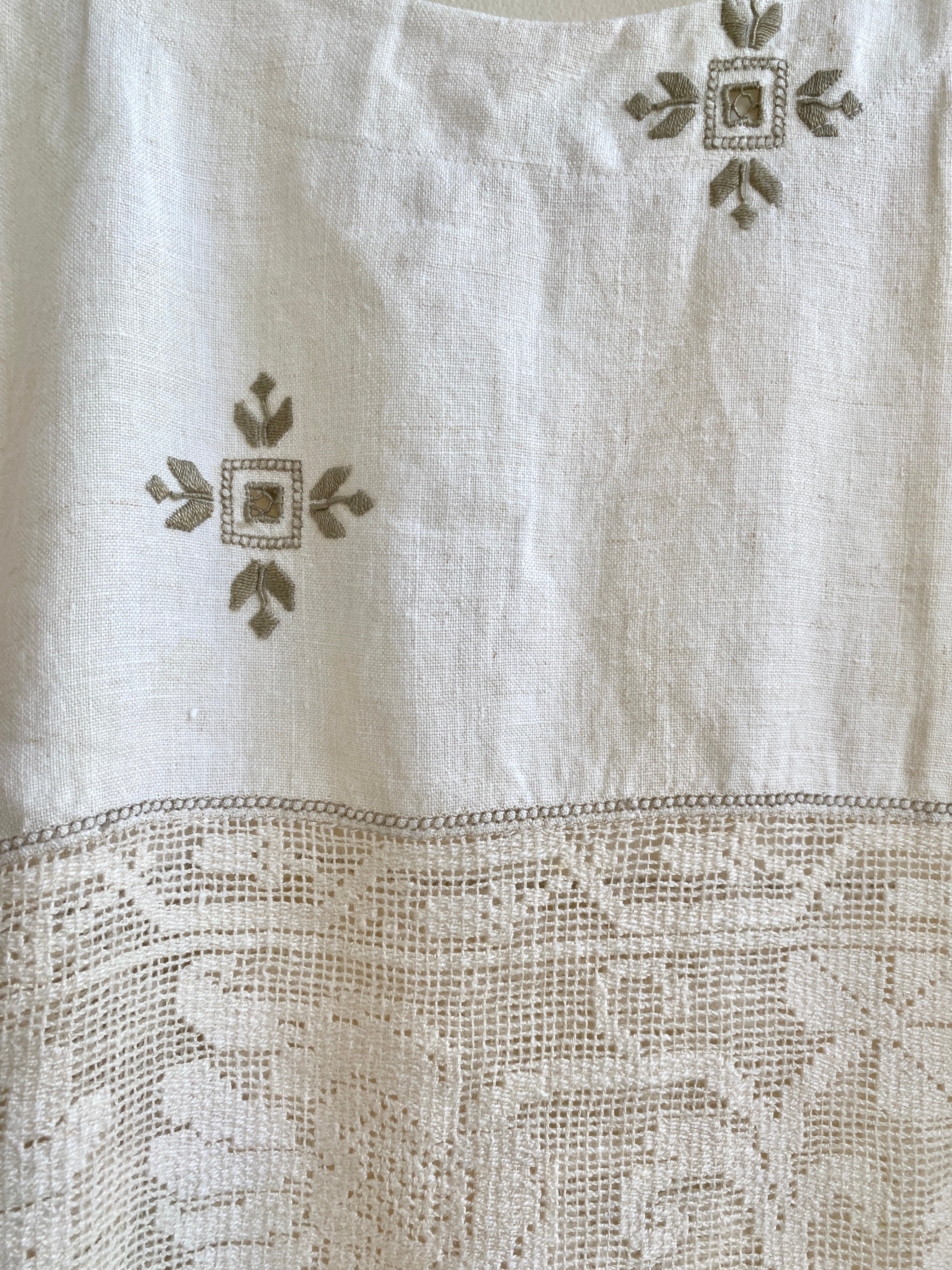 Embroidered 4 Point Star Linen & Crochet Box Top