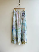 This eco-printed skirt is a flowing, one-of-a-kind piece, upcycled by Sherri Cohen Design. Eco-printed in soft blooming colors over a linen skirt with a side seam sipper and front pockets.