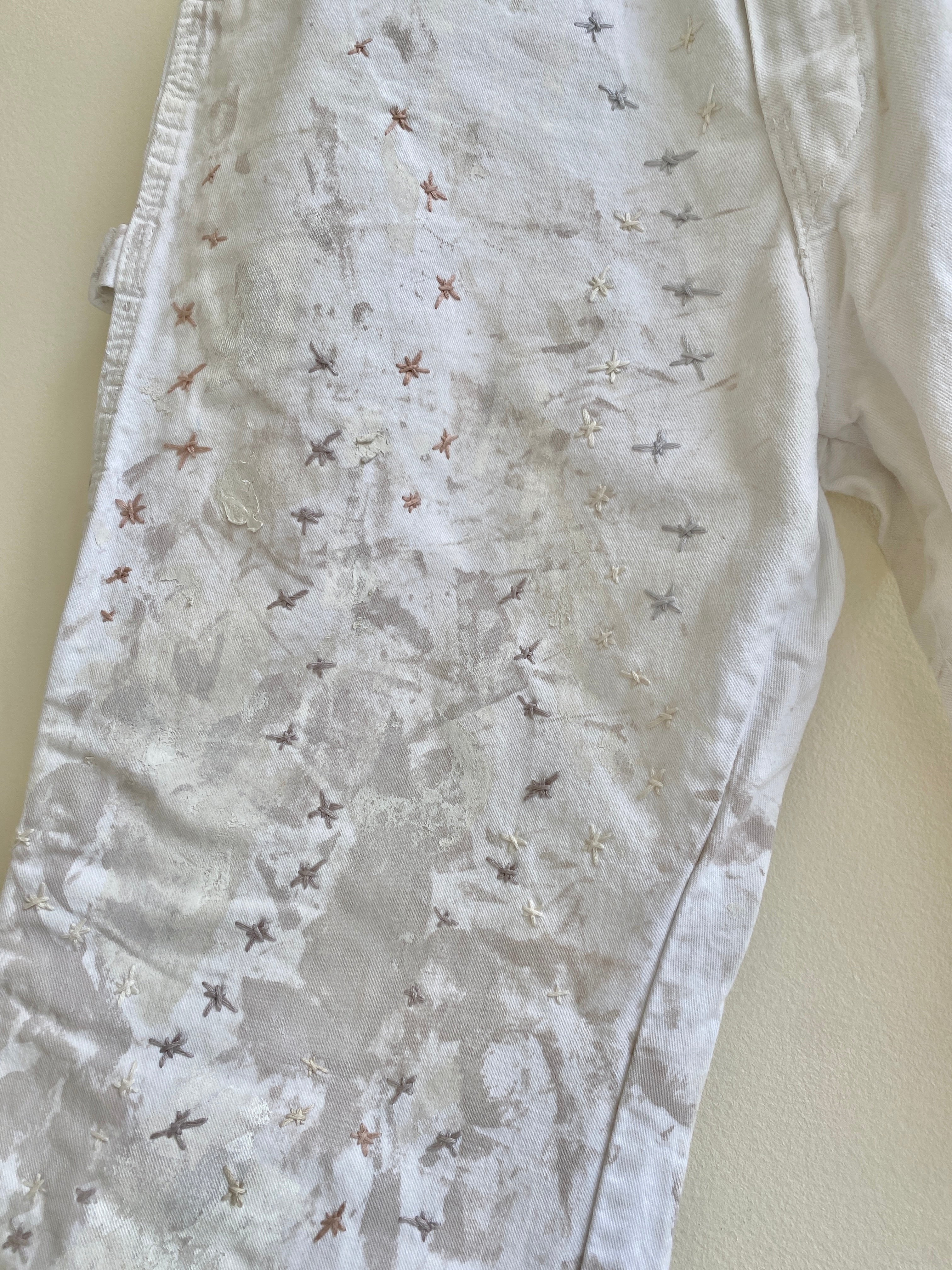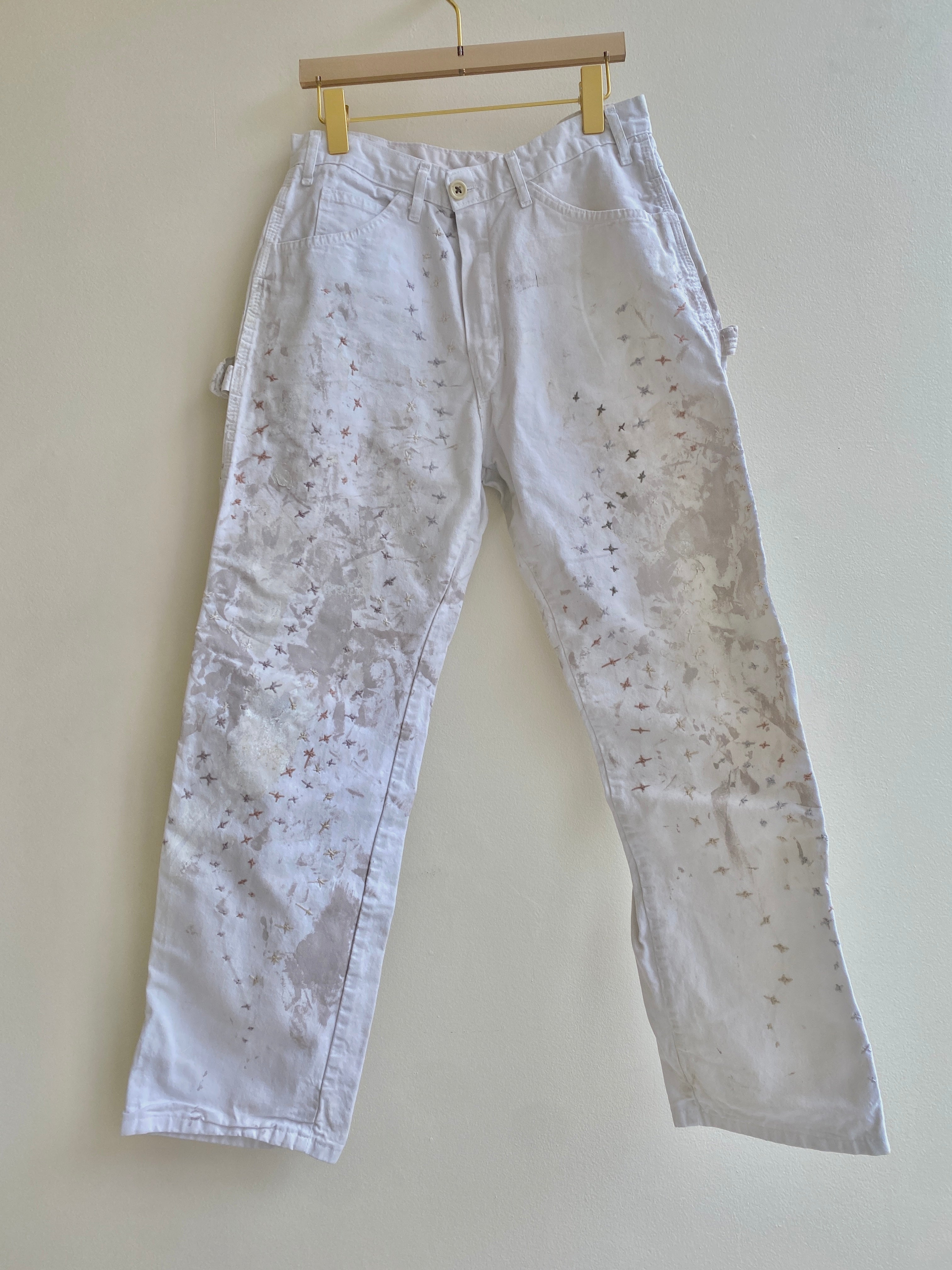 Matte Greyscale Embroidered Stars Vintage Painters Pants