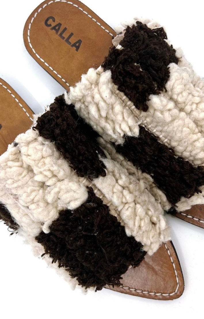 CALLA has created a sustainable line of Babouche slippers that embody conscientious design. Handmade from upcycled vintage Berber rugs, the slippers exist in limited edition - just a handful for each rug. Each pair is one-of-a-kind. We are proud to be working with local Moroccan craftspeople and supporting their traditions.