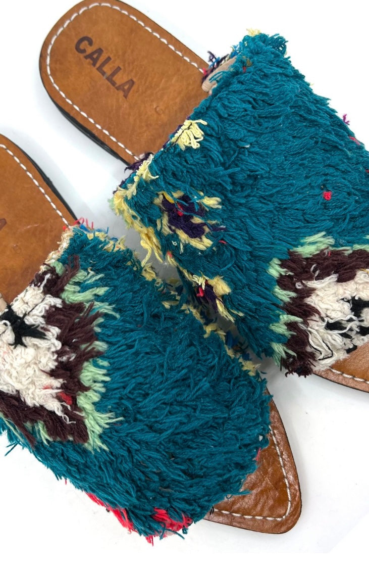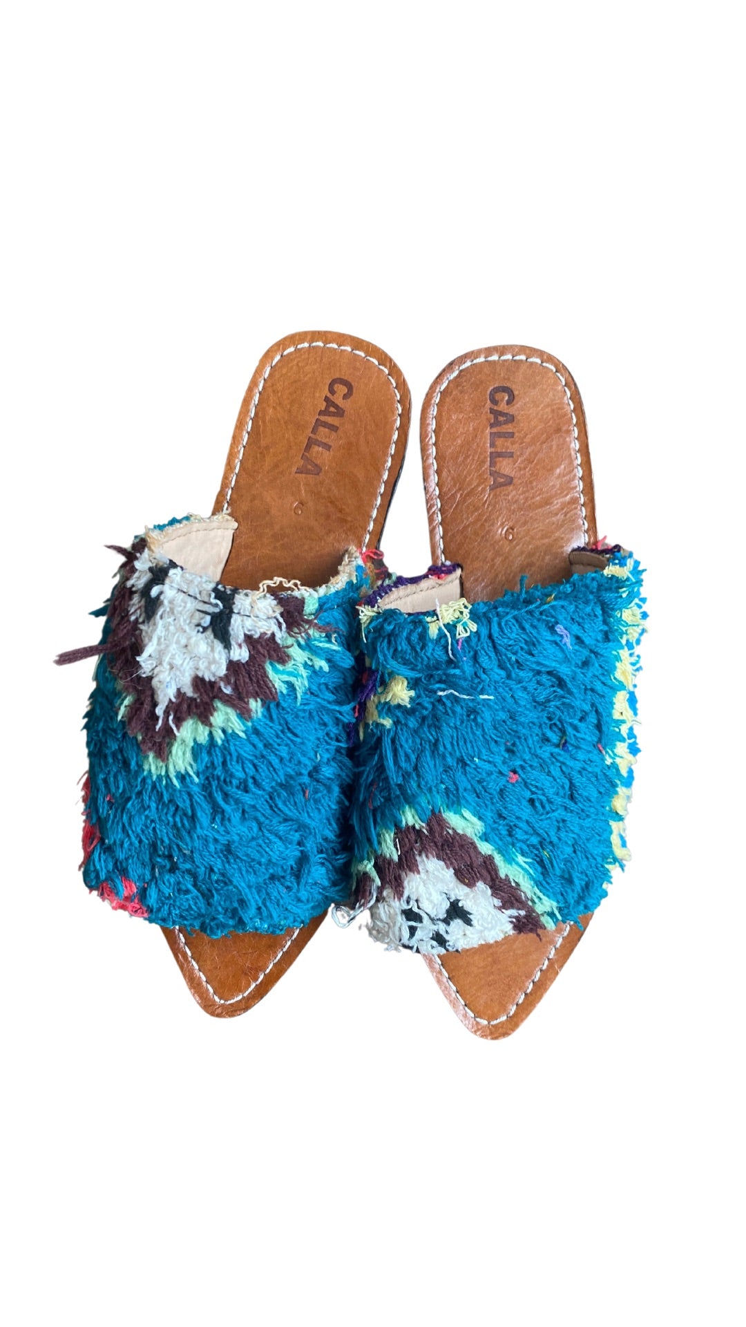 Moki Babouche “Xiomara” Flats Blue, Brown, Green, & Yellow (Size 39)