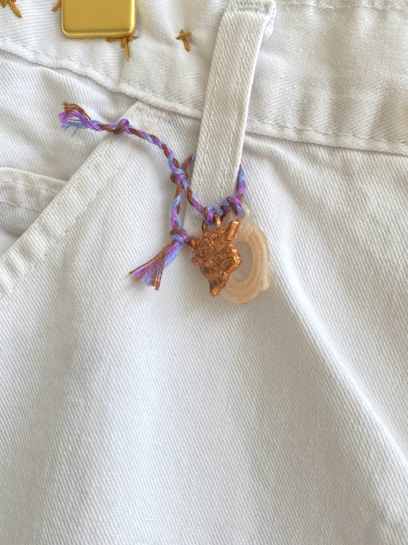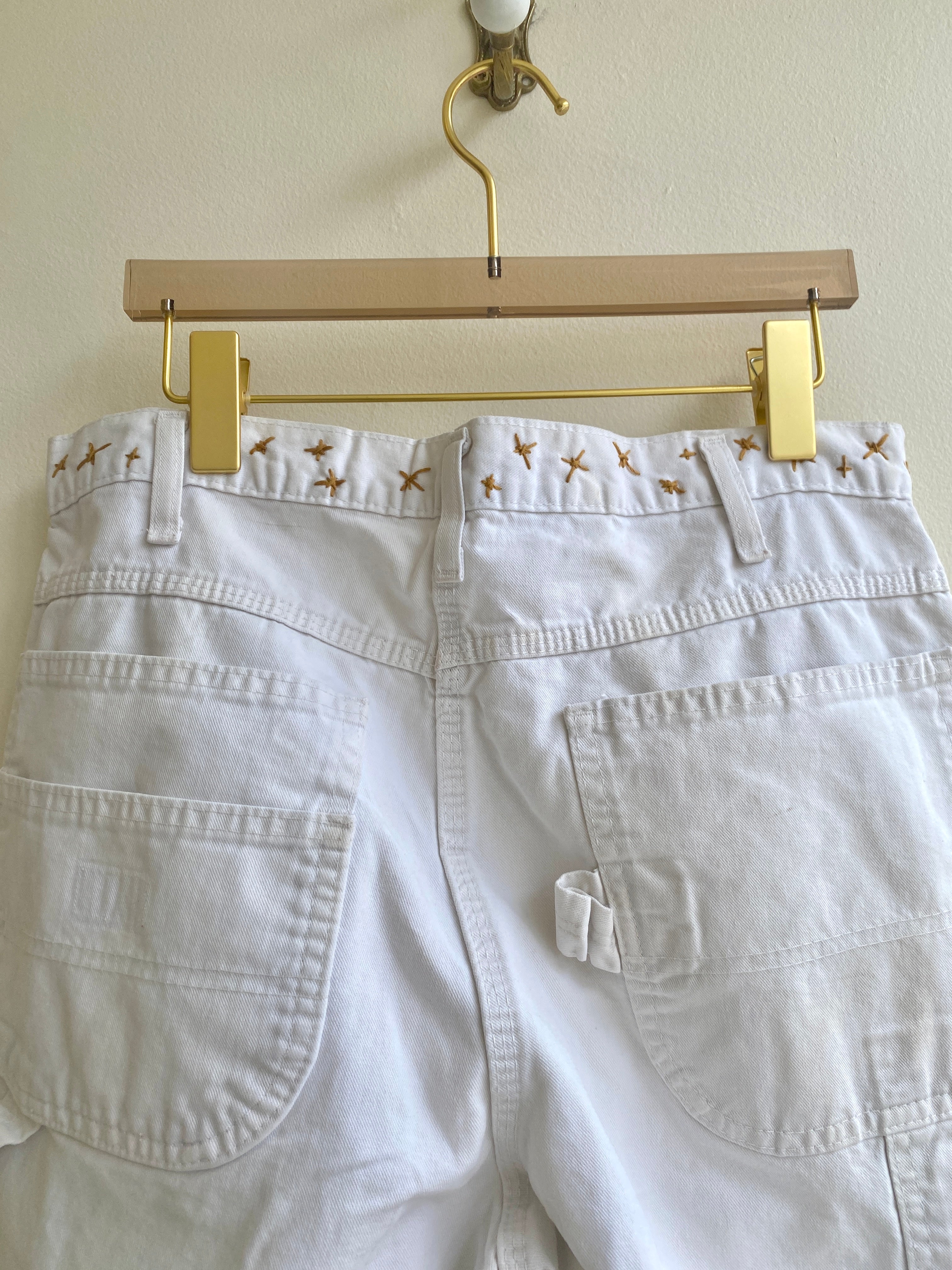 Mustard Star Embroidered & Pinstripe Fabric Patched Pants w/ Cracker Jack Charm (Reworked)