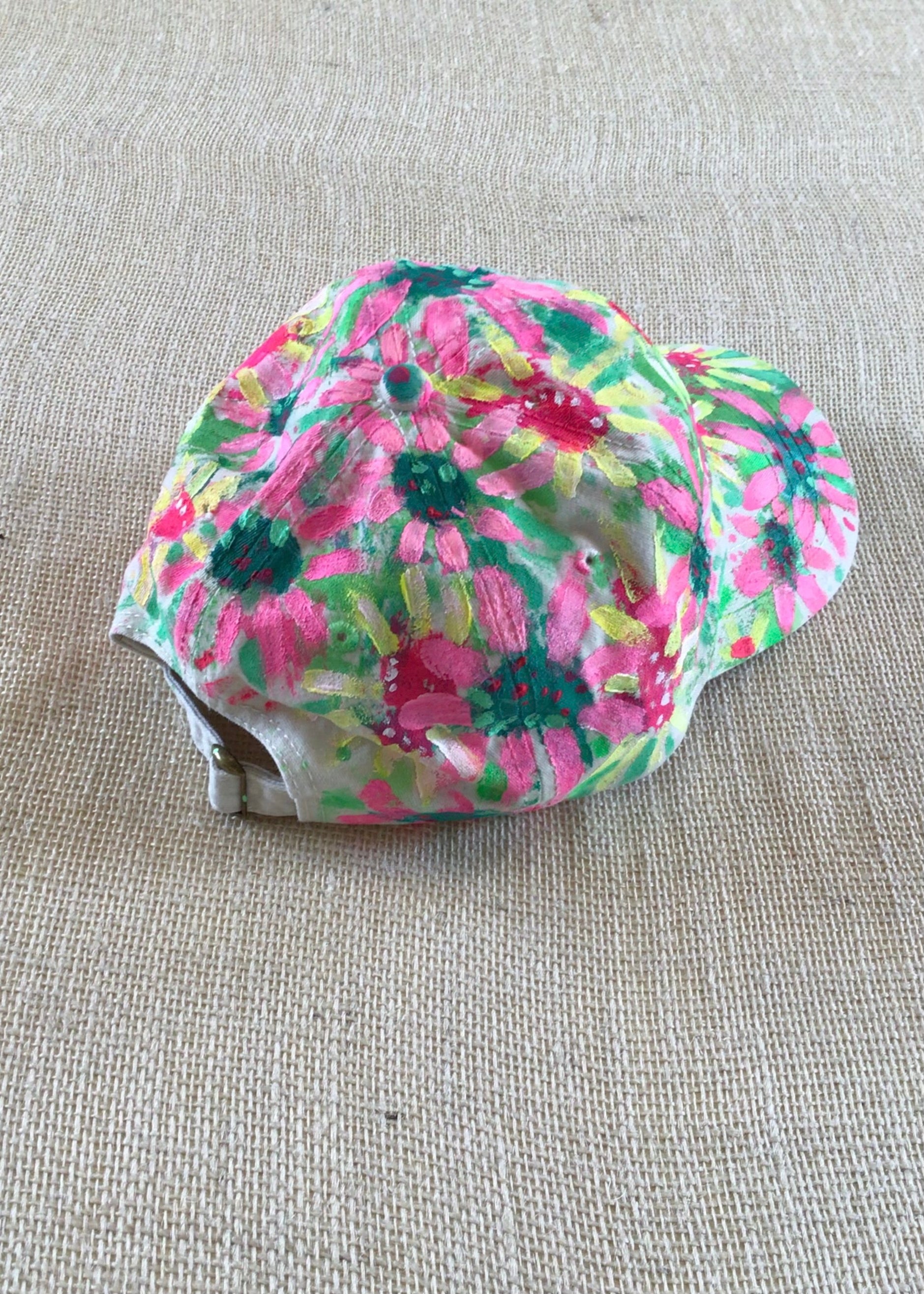 Natural Canvas Hand Painted Neon Pink & Yellow Flowers Baseball Cap