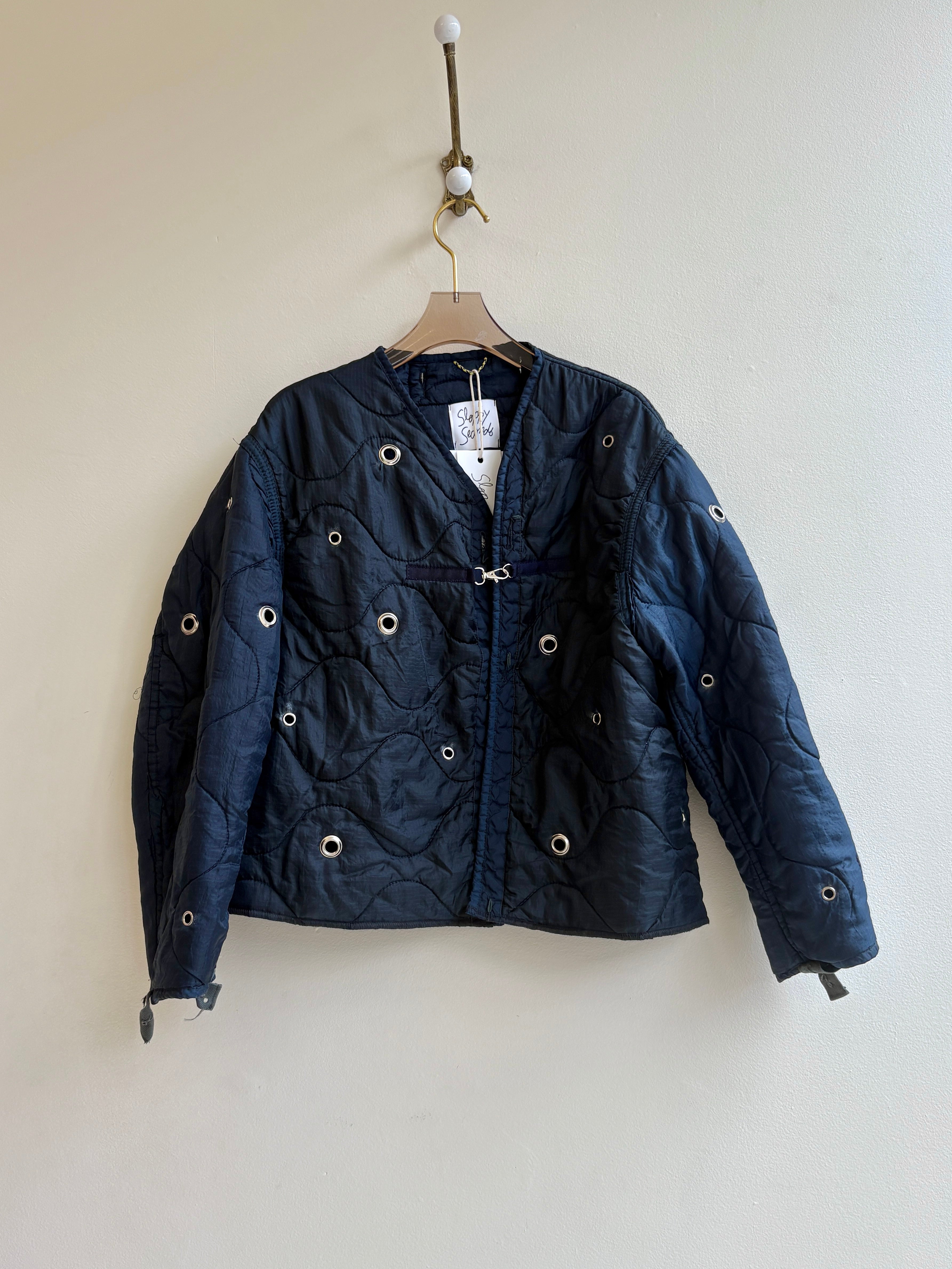 Navy Army Liner Quilted Coat w/ Silver Grommets & Clasp (Reworked)