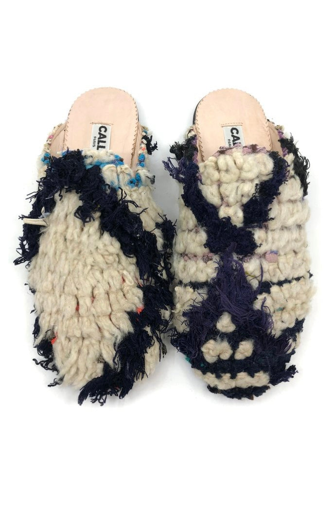 Handmade from upcycled vintage Berber rugs, our Babouche mules exist in limited edition - just a handful for each rug. They boast textural details that are one-of-a-kind. Like all Babouche slippers, they are comforable to wear and effortlessly versatile. Every pair supports local Moroccan craftspeople and their traditions.
