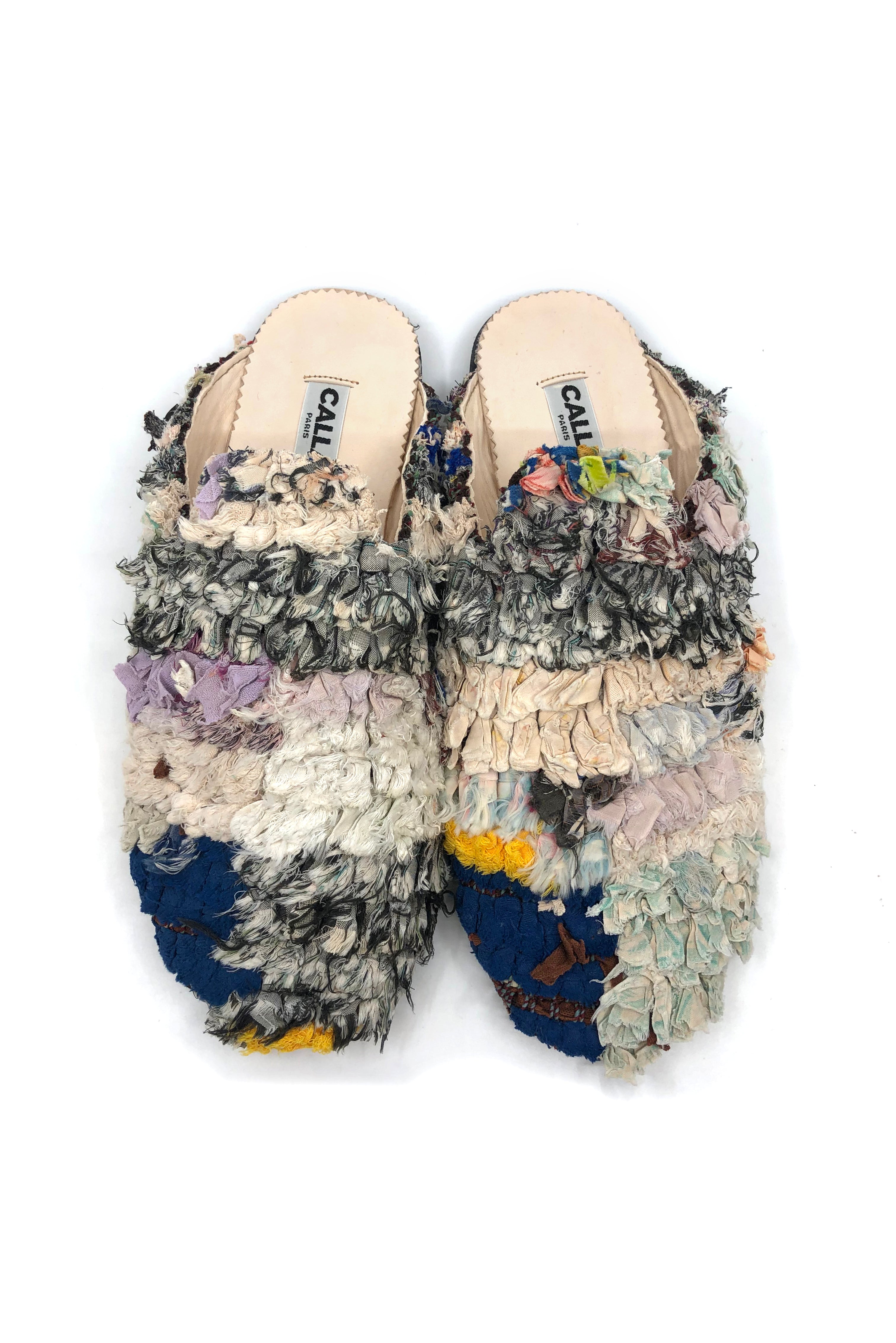 Handmade from upcycled vintage Berber rugs, our Babouche mules exist in limited edition - just a handful for each rug. They boast textural details that are one-of-a-kind. Like all Babouche slippers, they are comforable to wear and effortlessly versatile. Every pair supports local Moroccan craftspeople and their traditions.