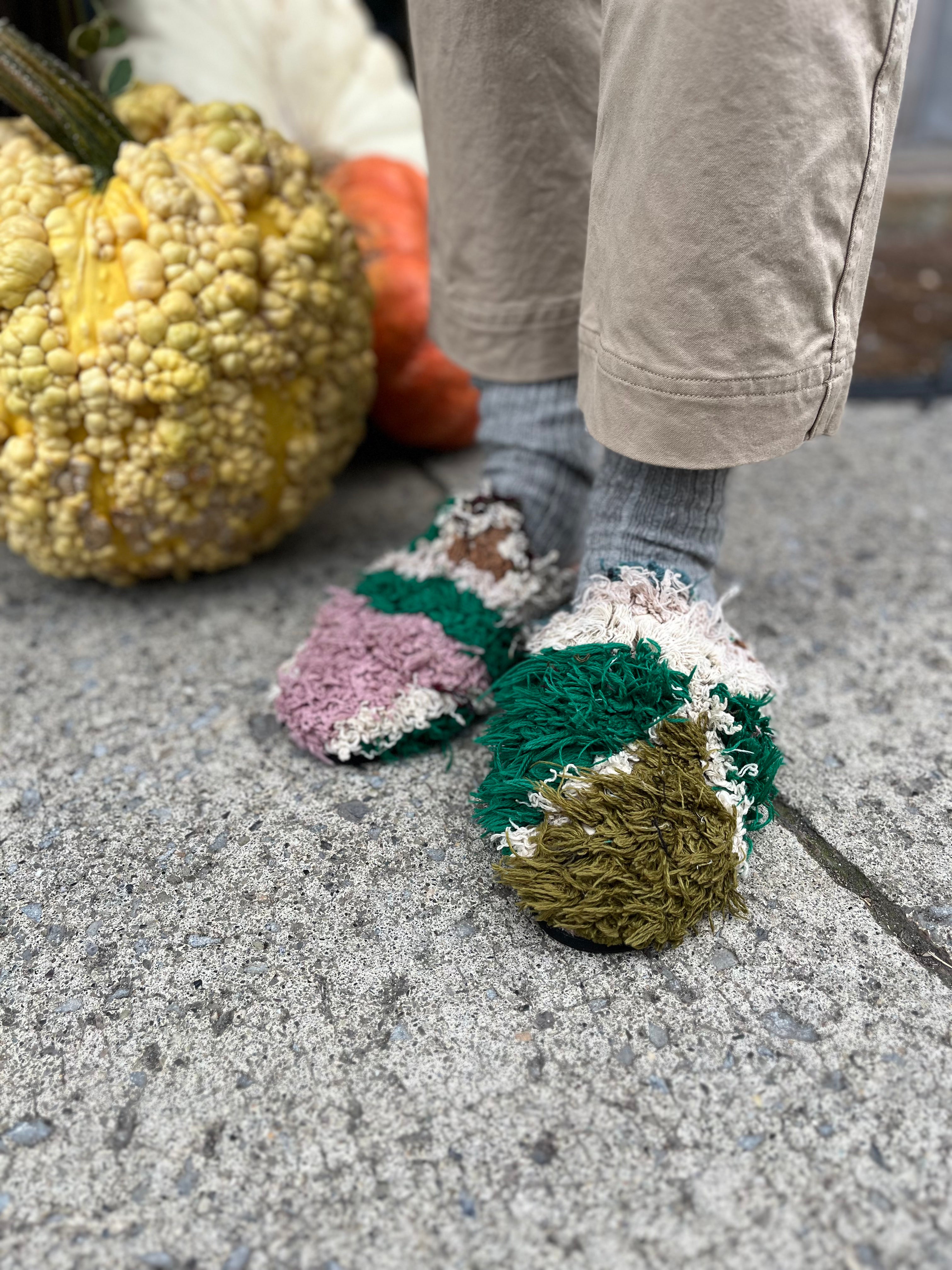 Handmade from upcycled vintage Berber rugs, our Babouche mules exist in limited edition - just a handful for each rug. They boast textural details that are one-of-a-kind. Like all Babouche slippers, they are comforable to wear and effortlessly versatile. Every pair supports local Moroccan craftspeople and their traditions.