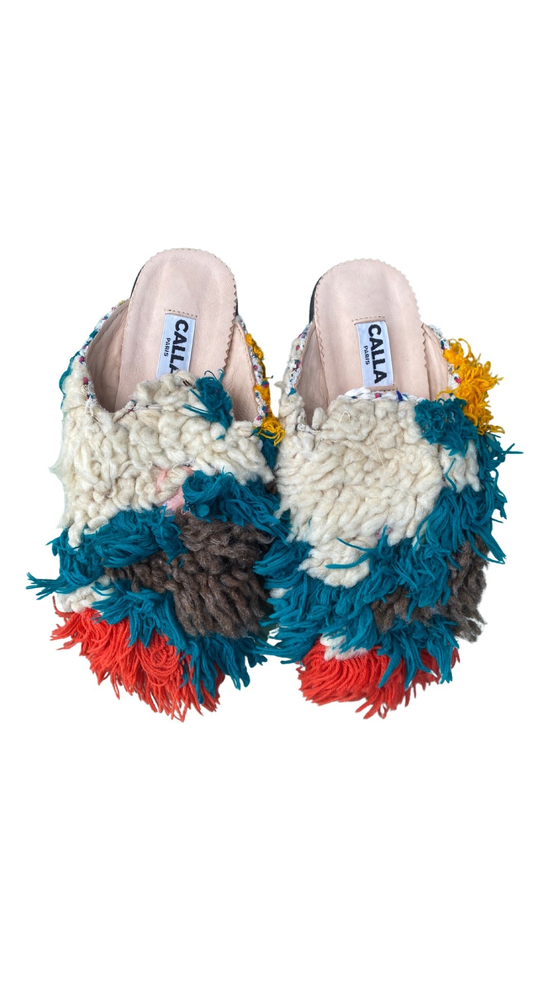 Niki Babouche Flats In Colors Cream, Teal, Brown & Orange (Size 38)