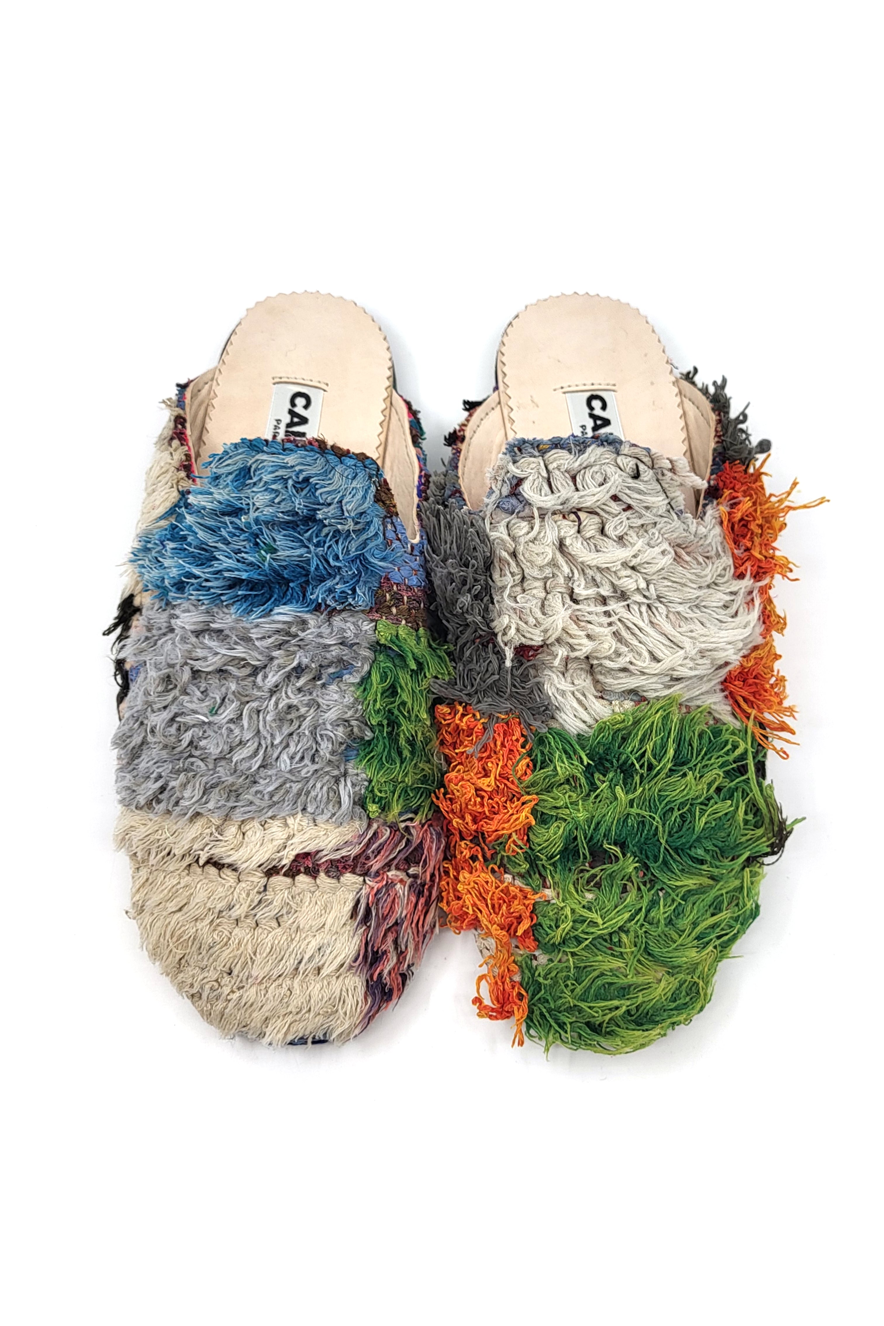 Handmade from upcycled vintage Berber rugs, our Babouche mules exist in limited edition - just a handful for each rug. They boast textural details that are one-of-a-kind. Like all Babouche slippers, they are comforable to wear and effortlessly versatile. Every pair supports local Moroccan craftspeople and their traditions.