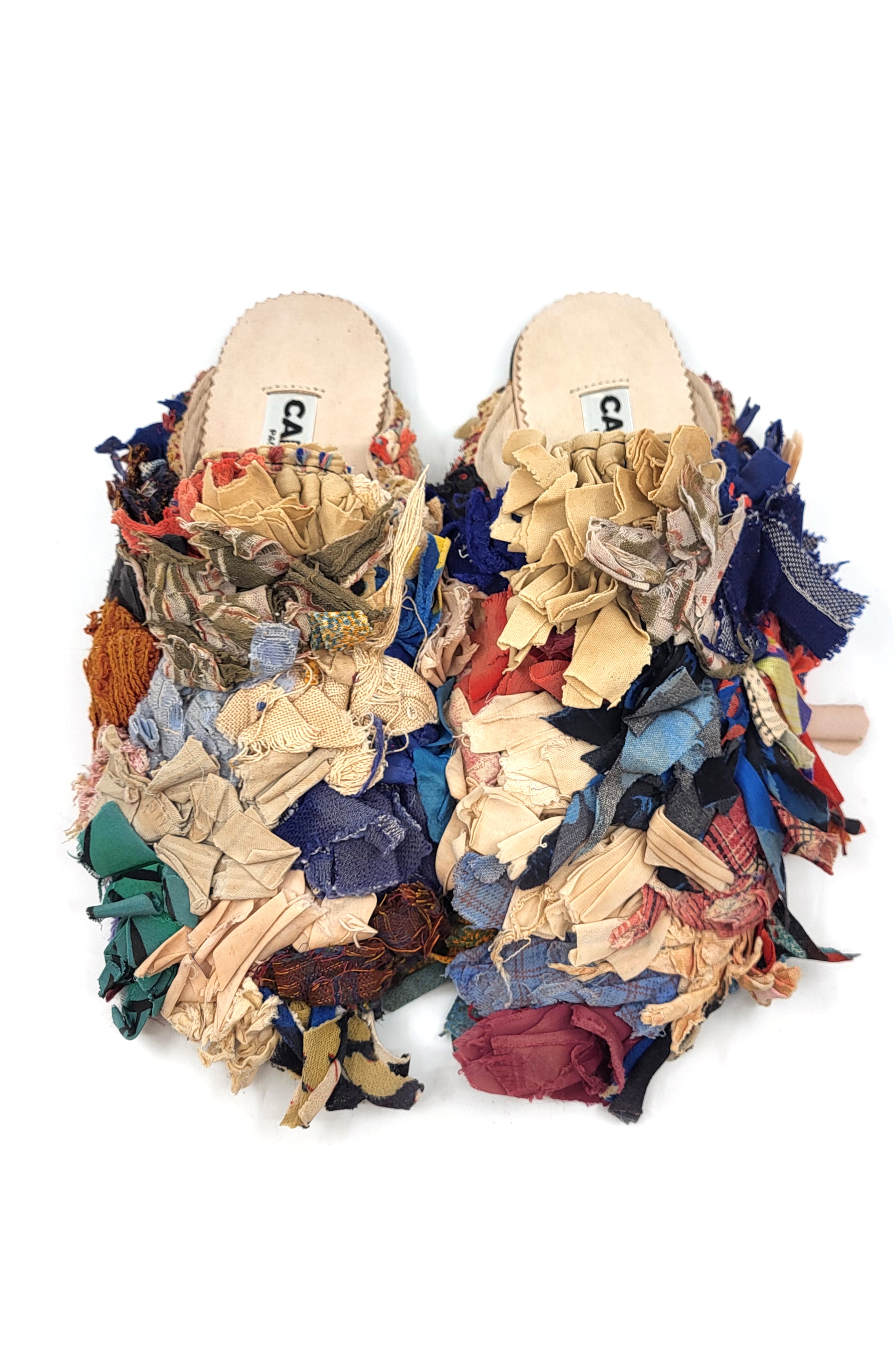 Handmade from upcycled vintage Berber rugs, our Babouche mules exist in limited edition - just a handful for each rug. They boast textural details that are one-of-a-kind. Like all Babouche slippers, they are comforable to wear and effortlessly versatile. Every pair supports local Moroccan craftspeople and their traditions.
