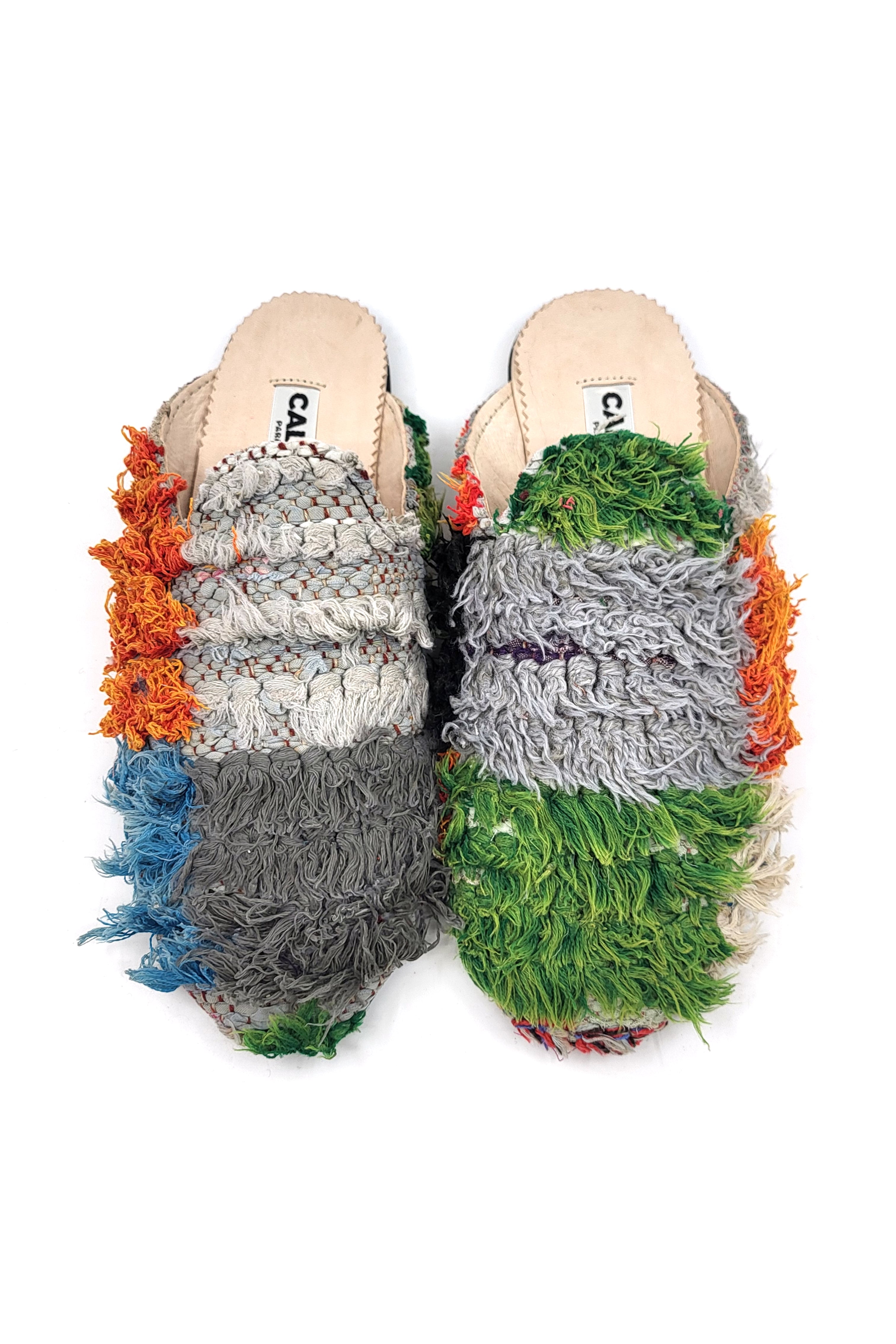 Handmade from upcycled vintage Berber rugs, our Babouche mules exist in limited edition - just a handful for each rug. They boast textural details that are one-of-a-kind. Like all Babouche slippers, they are comforable to wear and effortlessly versatile. Every pair supports local Moroccan craftspeople and their traditions.
