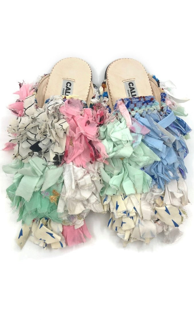 Calla works with a Moroccan family and French artisans to craft handmade shoes from recycled rugs. Every pair is one-of-a-kind.