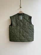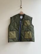Olive Green Army Liner Quilted Vest w/ Navy Blue Zipper & Pockets (Reworked)