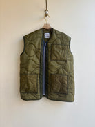 Olive Green Army Liner Quilted Vest w/ Navy Blue Zipper & Pockets (Reworked)