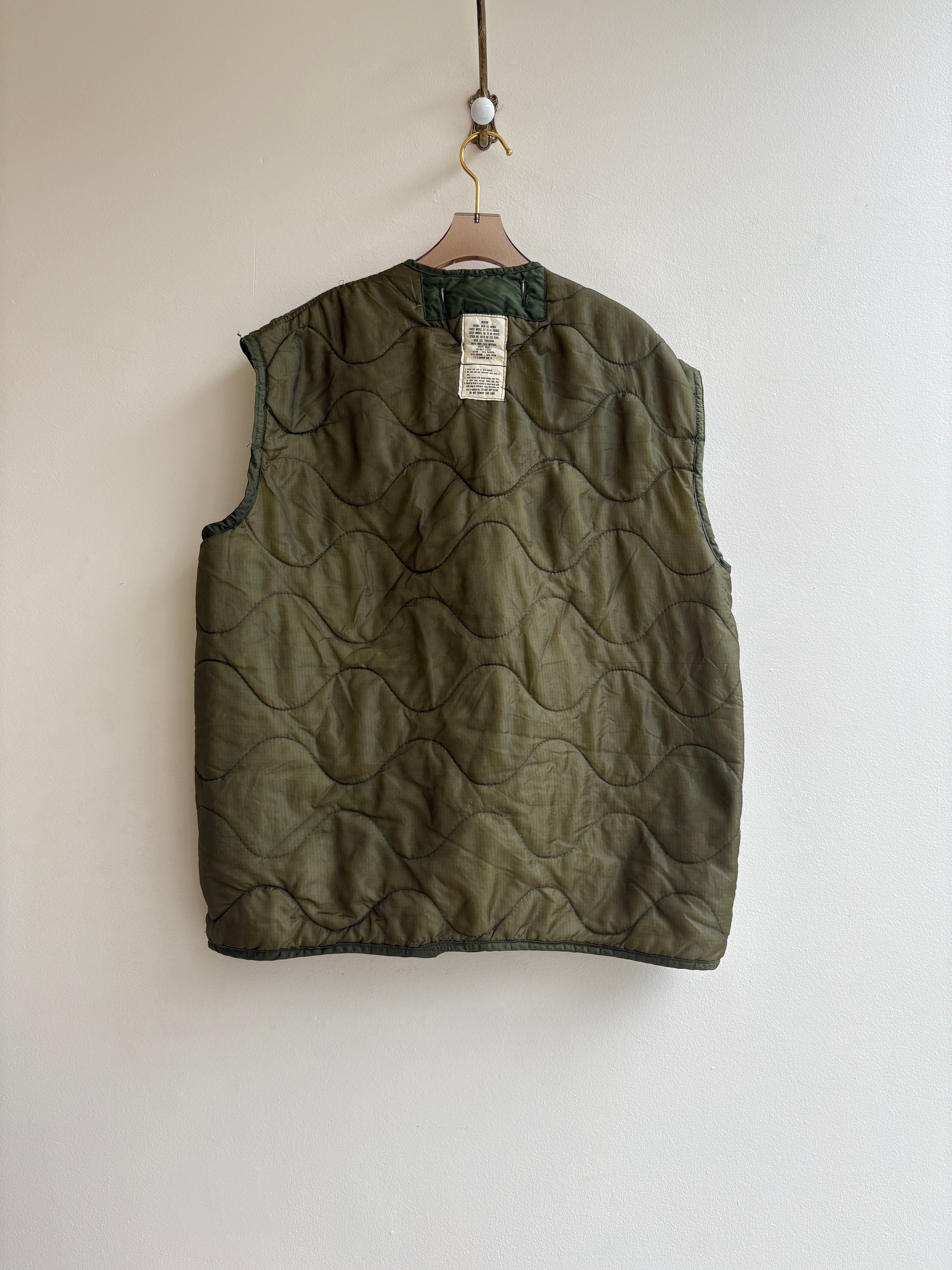 Olive Green Army Liner Quilted Vest w/ Offset Button Up & Pockets (Reworked)
