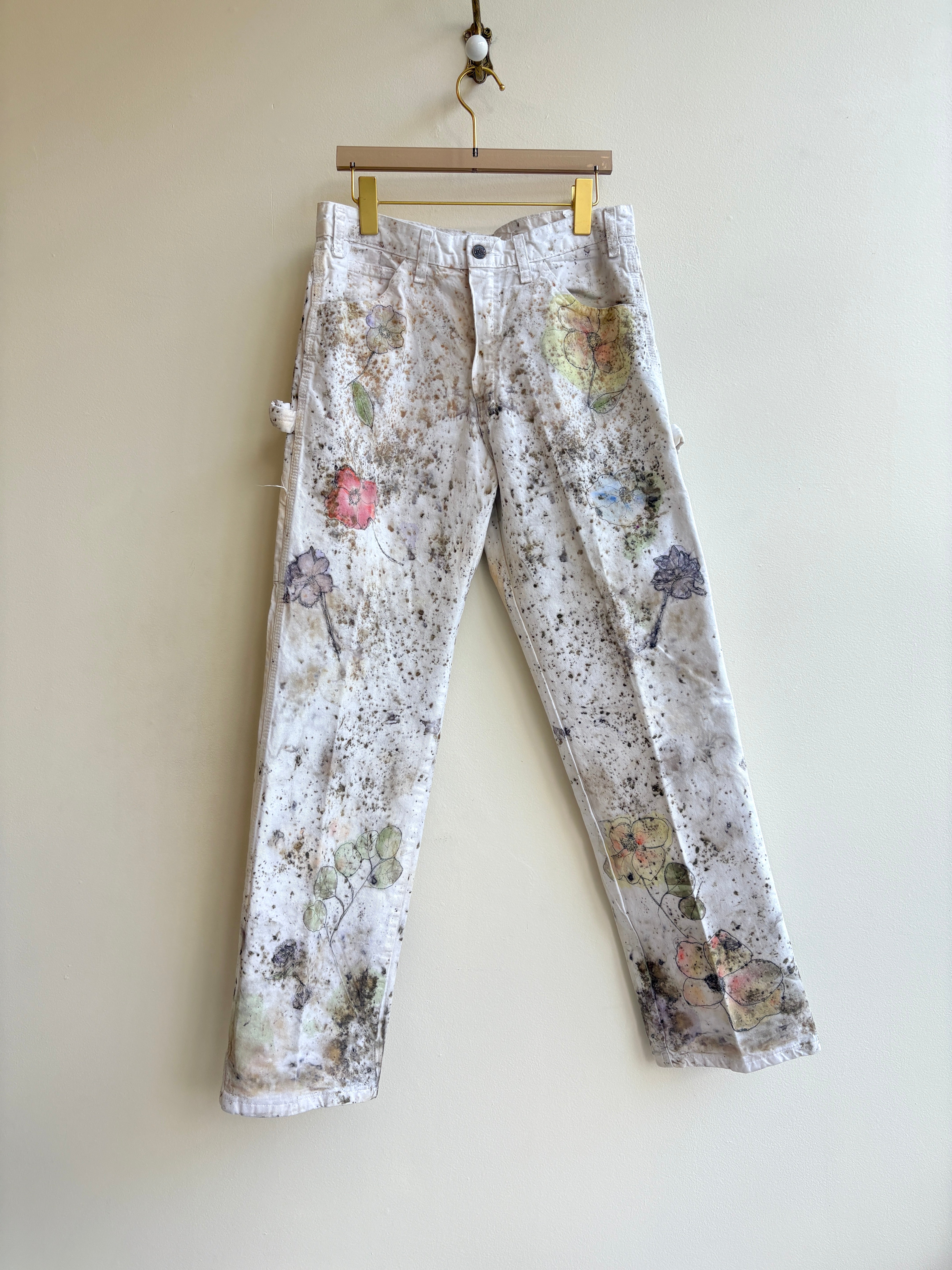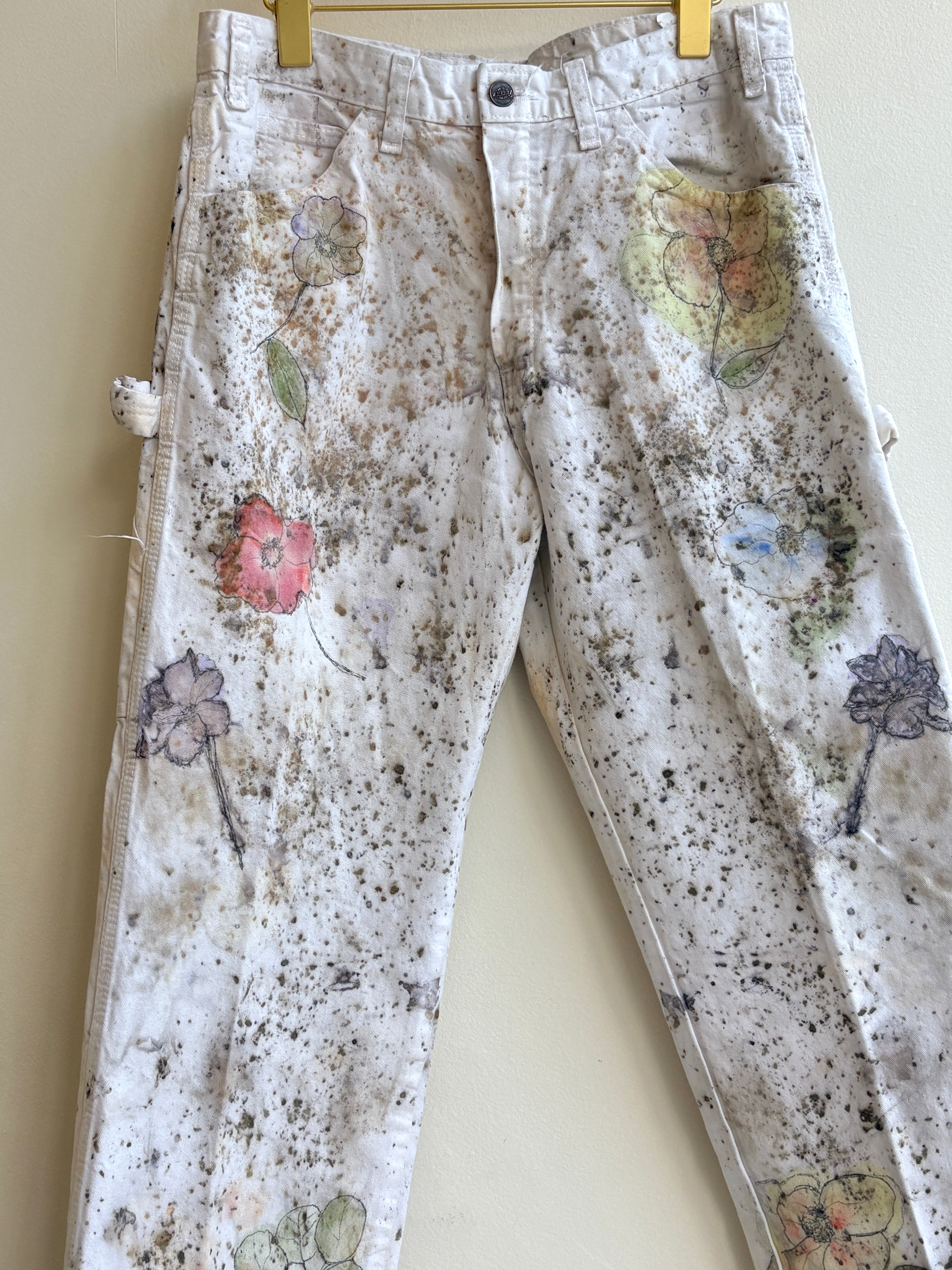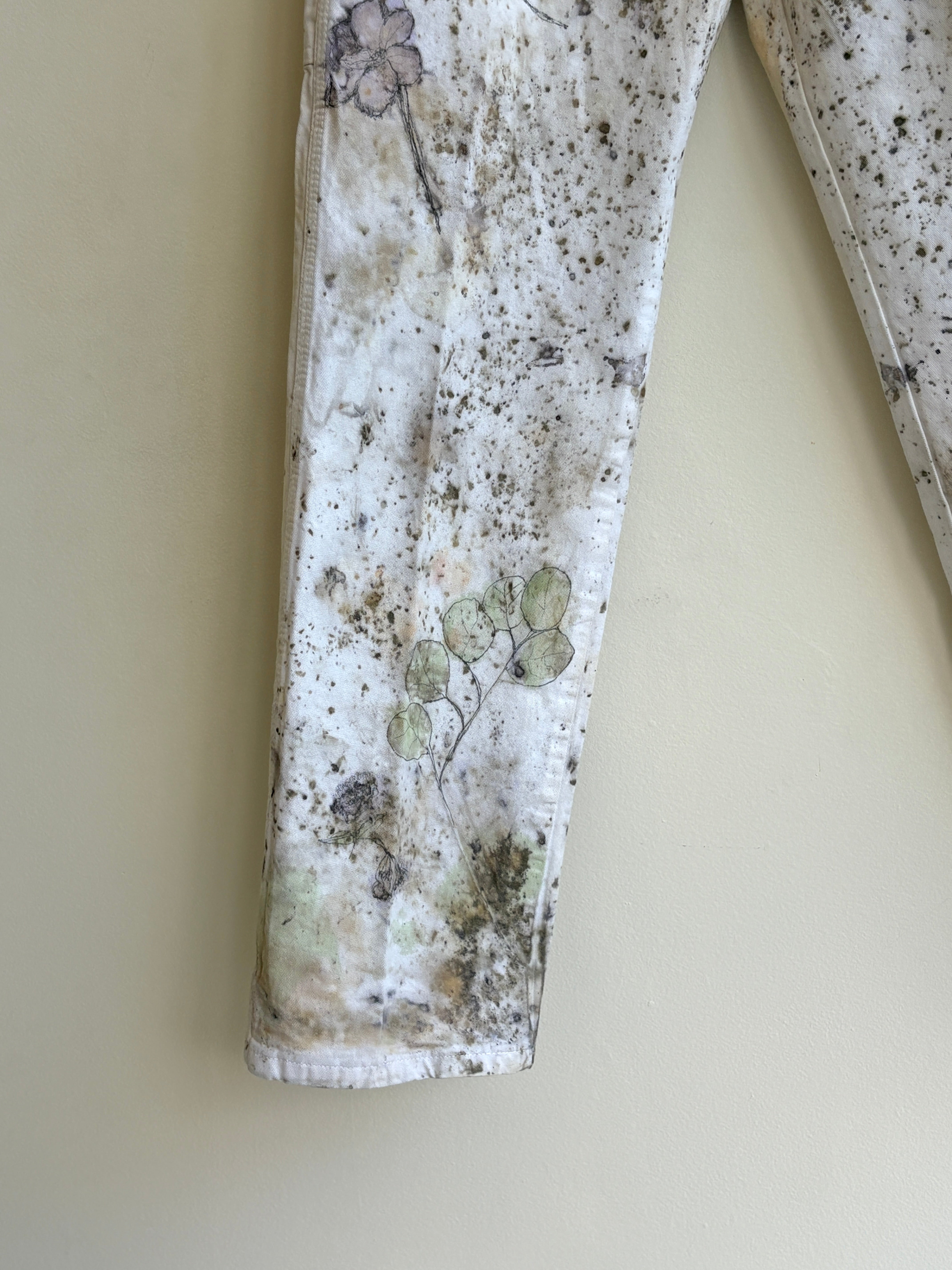 Orange, Lavender & Olive Eco Printed & Hand Drawn Pants (Reworked)