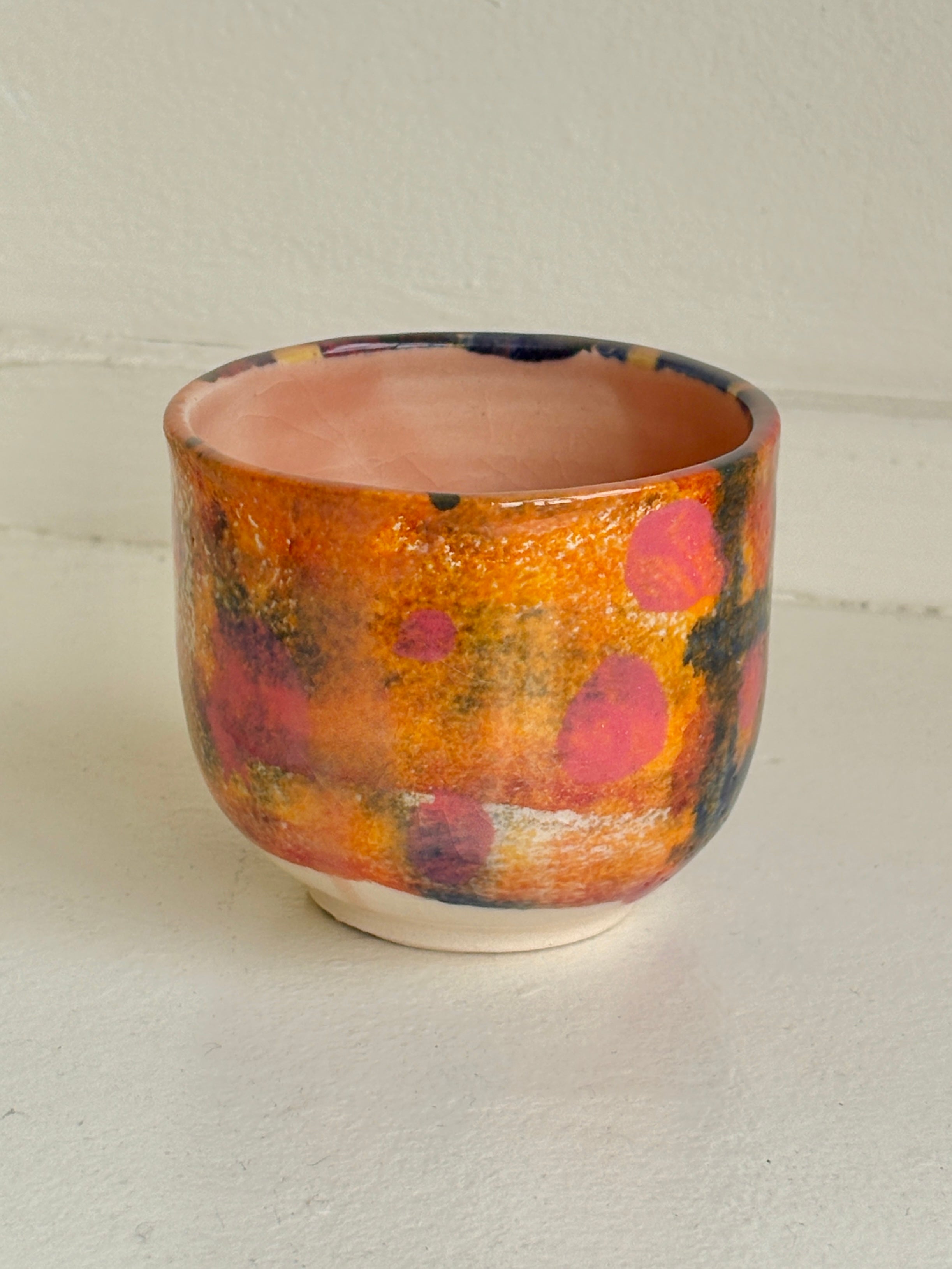 Orange, Pink, & Navy Glazed Interior Decorative Vase