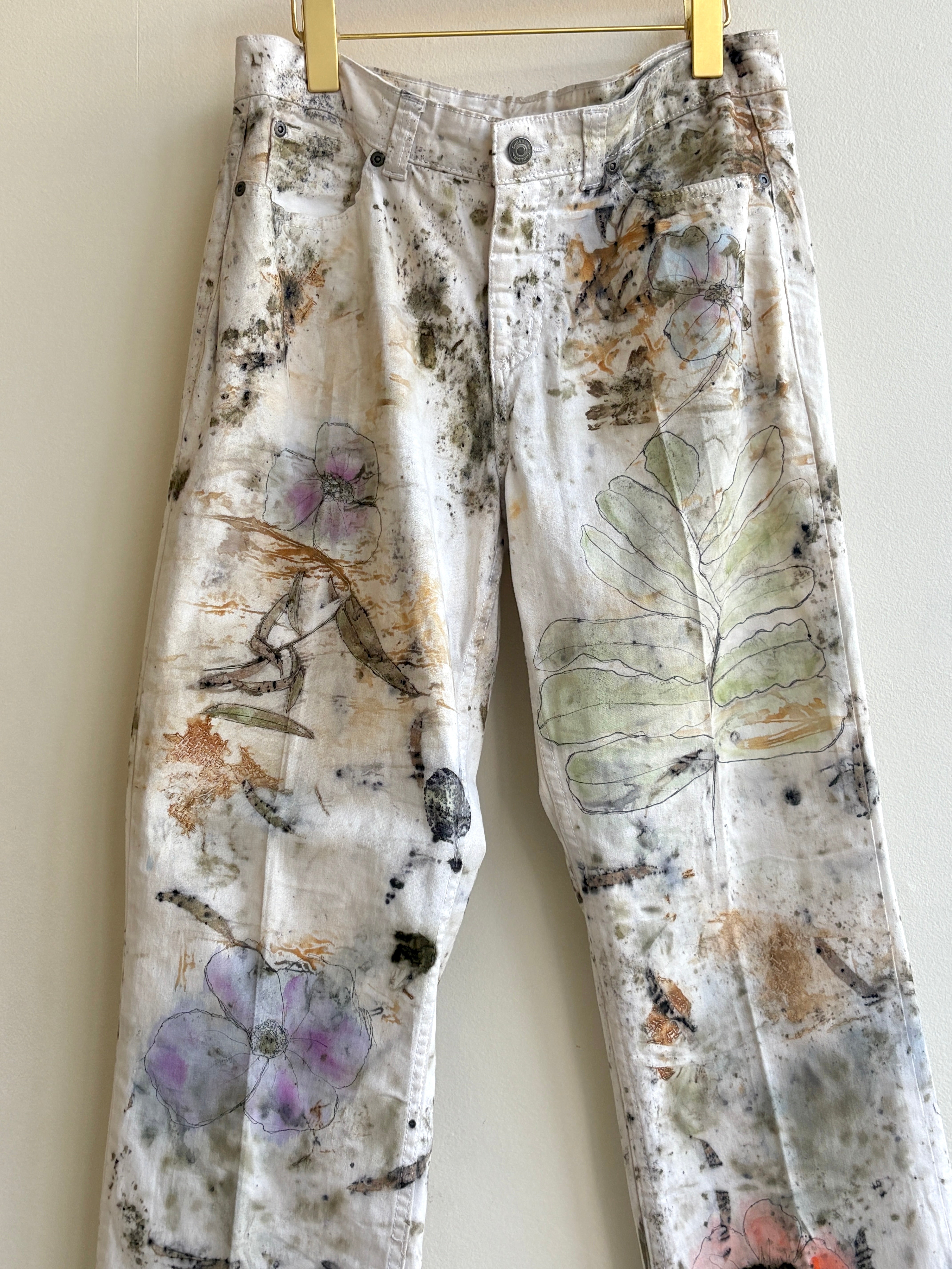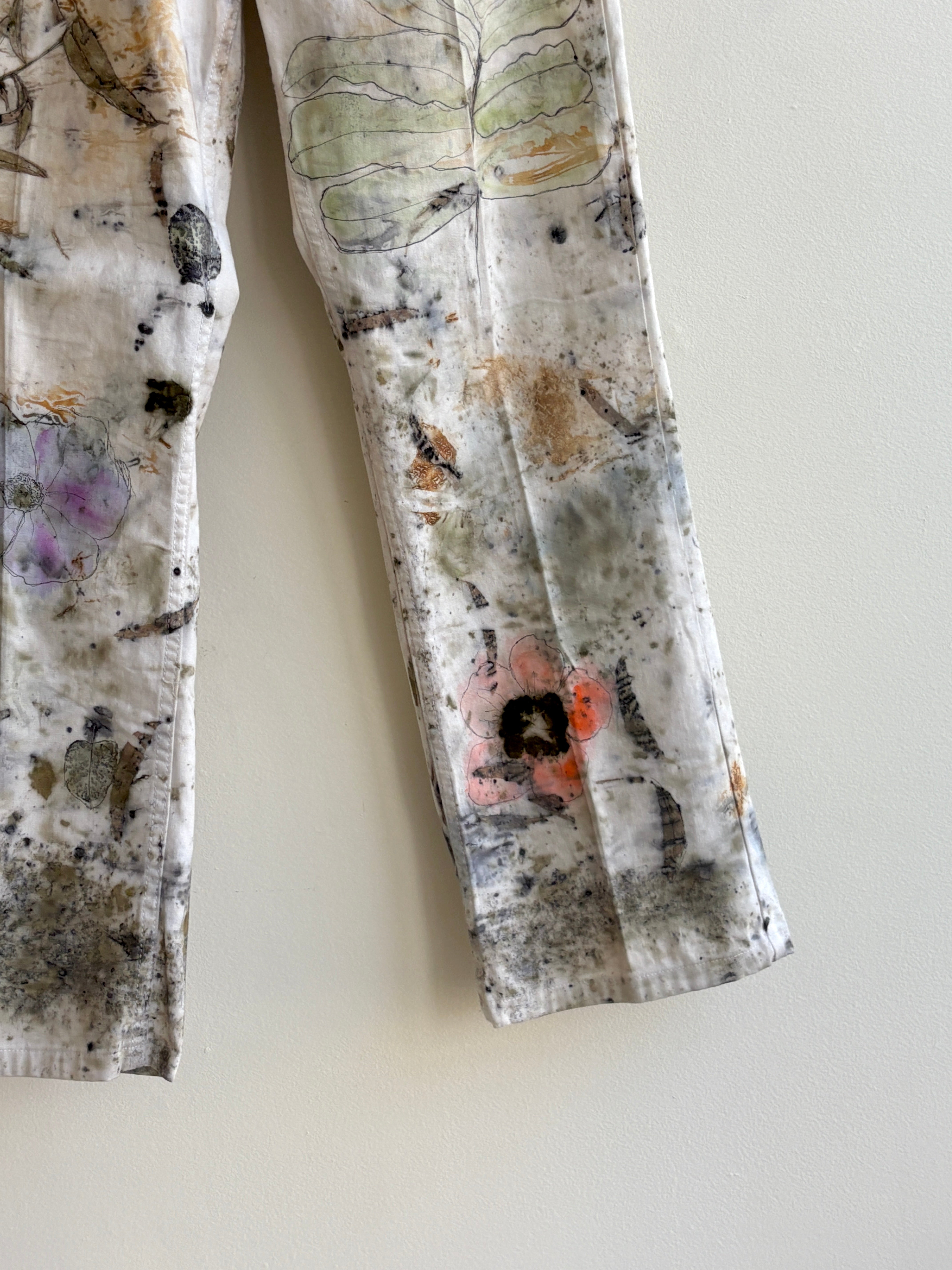 Orange, Violet & Olive Eco Printed & Hand Drawn Wide Leg Pants (Reworked)