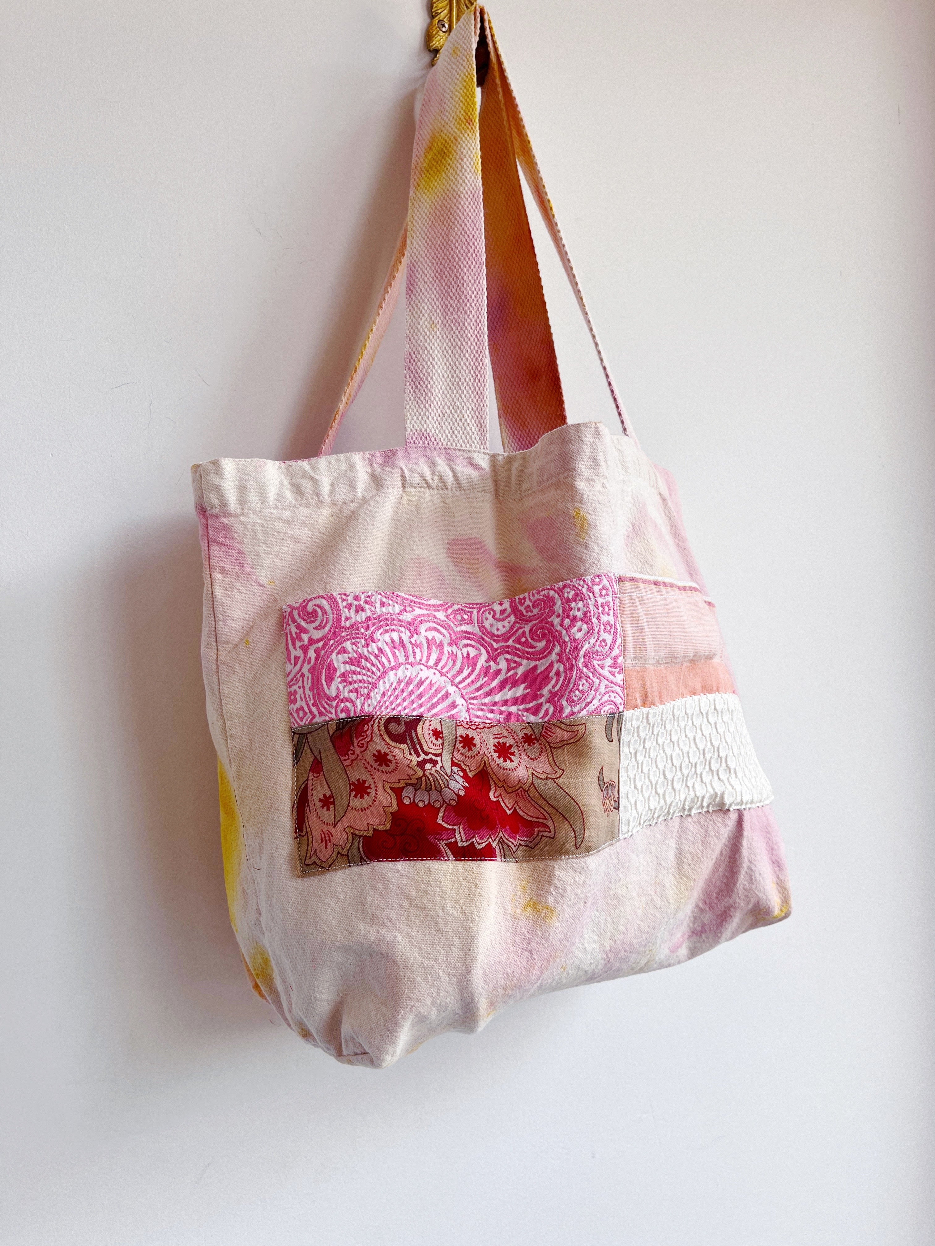 Organic Cotton Hand Dyed Tote | Sunset w/ White, Stripes & Paisley (Reworked)