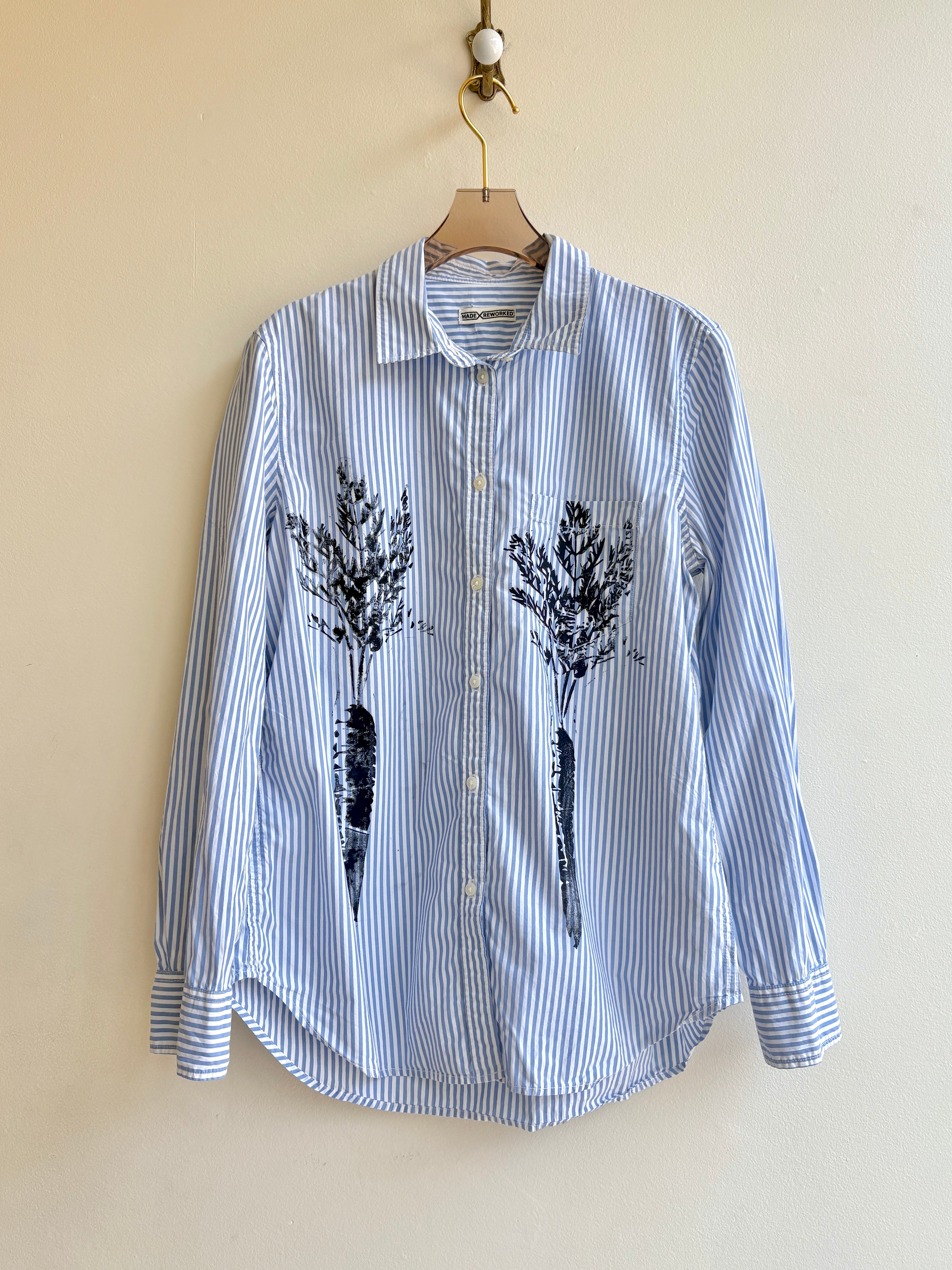Pale Blue & White Stripe Carrot Print Shirt (Reworked)