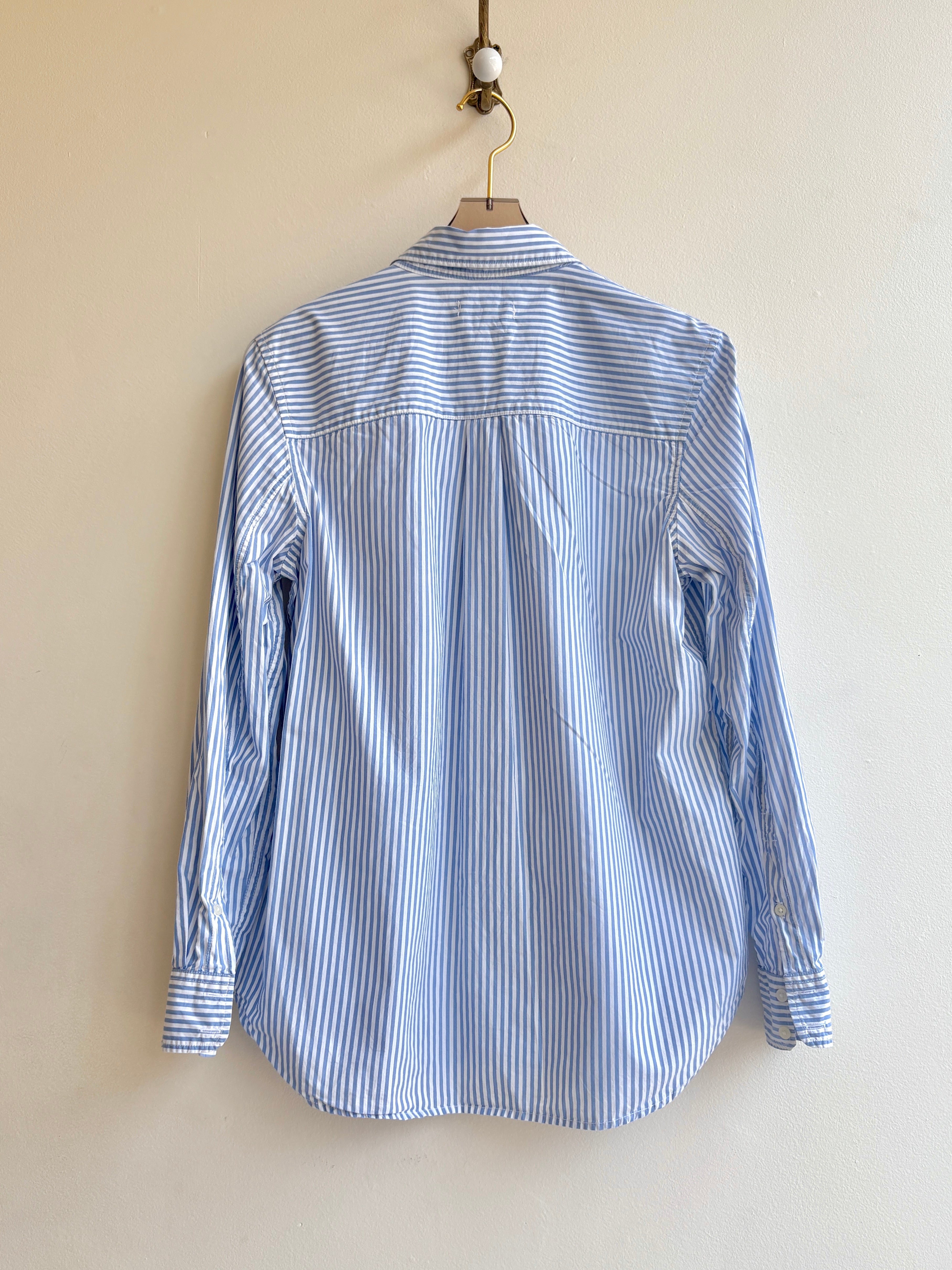 • Reworked vintage pale blue & white stripe button-down shirt