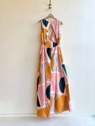 Peach, Red, Green, Mustard Dotted Sunrise Sleeveless “Origami” Dress