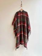 Peat, Emerald, Cherry Red and Cream Tartan Zero-Waste Reversible Cape