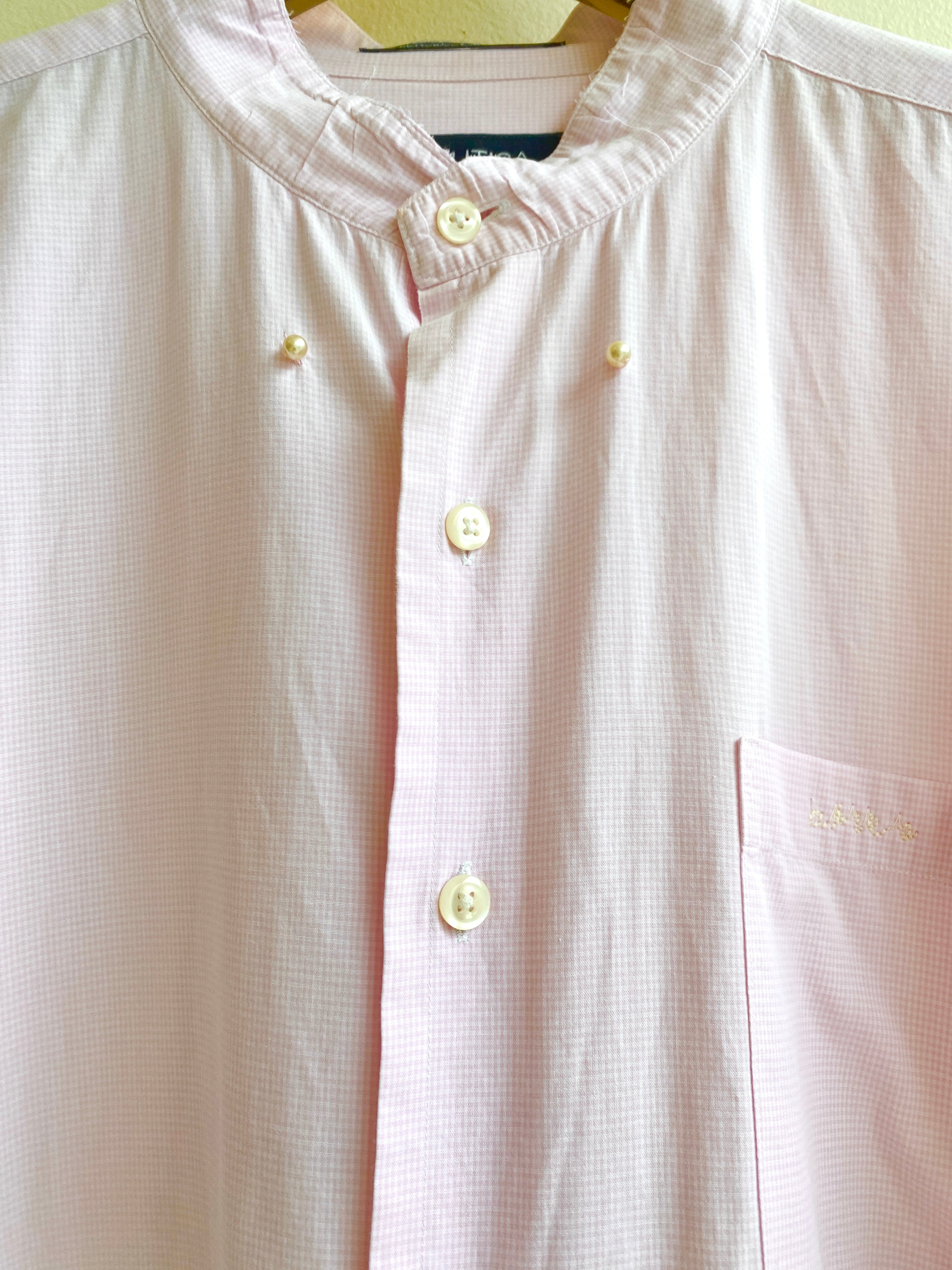 Pink & White Des Dress w/ Pearls and Flower Embroidery (Reworked)