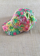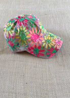 Natural and Pink Hand Painted Neon Multi Color Flowers Baseball Cap