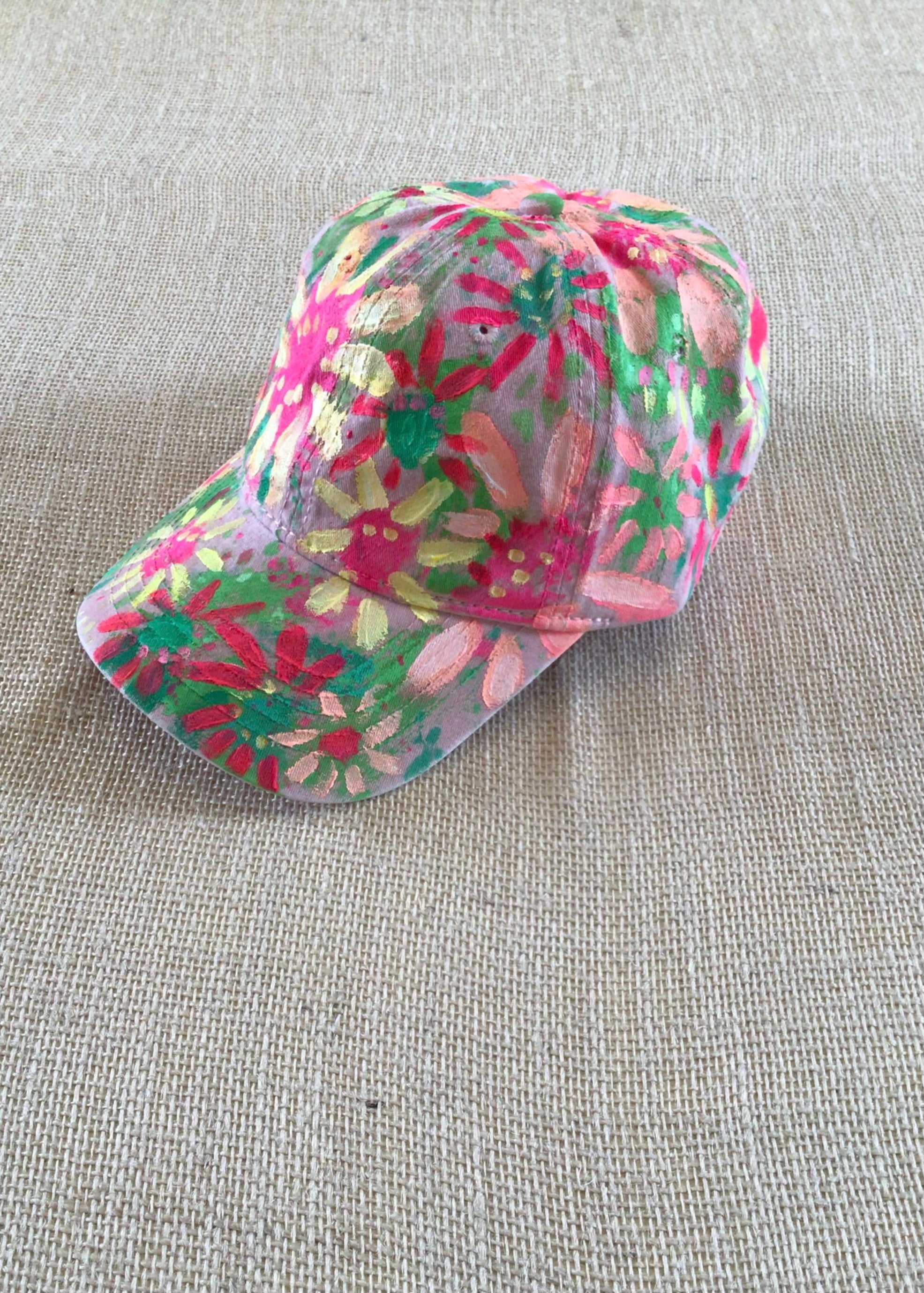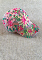 Pink Hand Painted Neon Yellow & Pink Flowers Baseball Cap