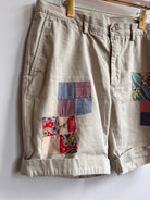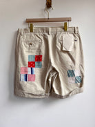 Quilted Patch Applique Cream Khaki Shorts (Reworked)