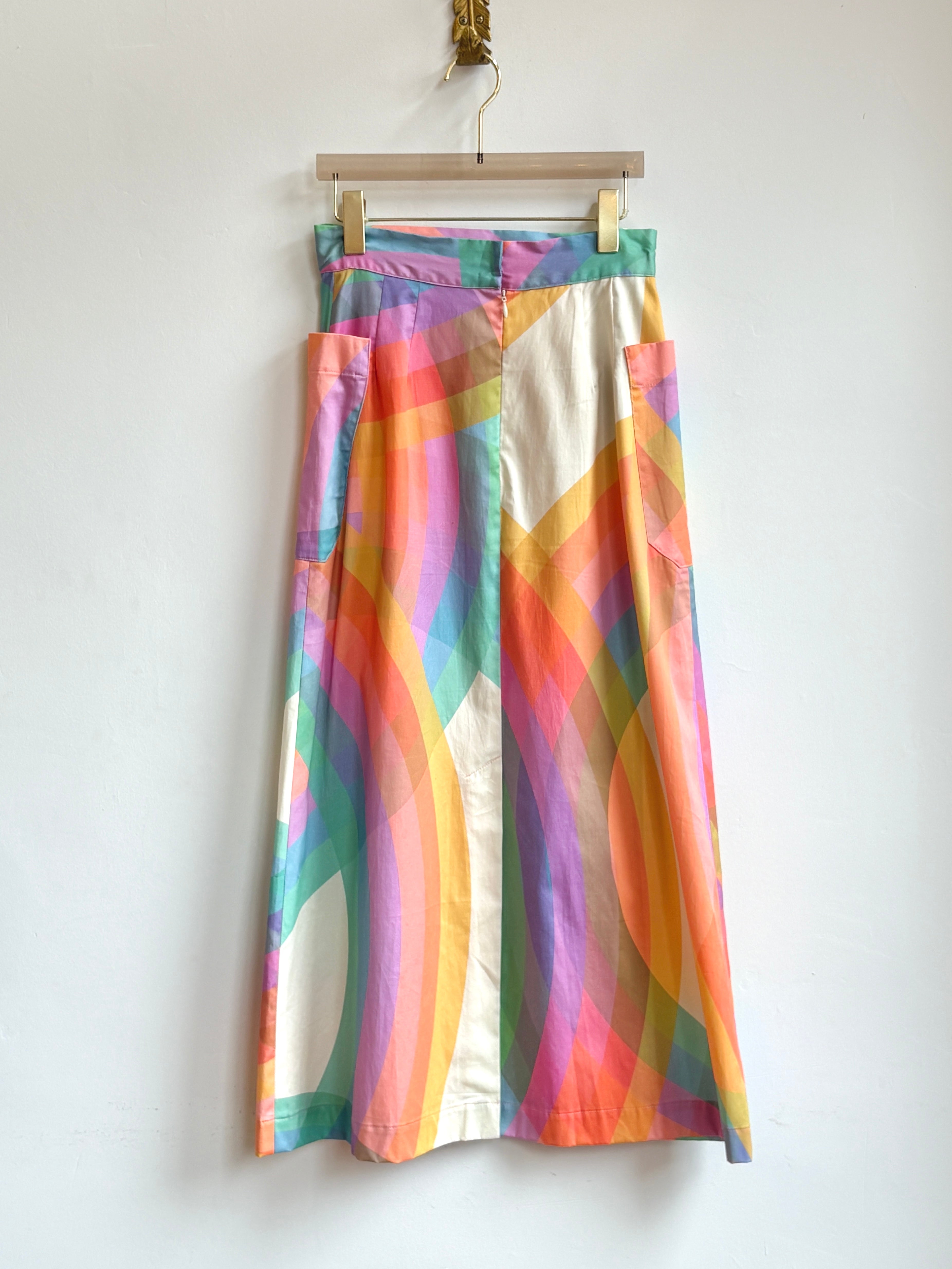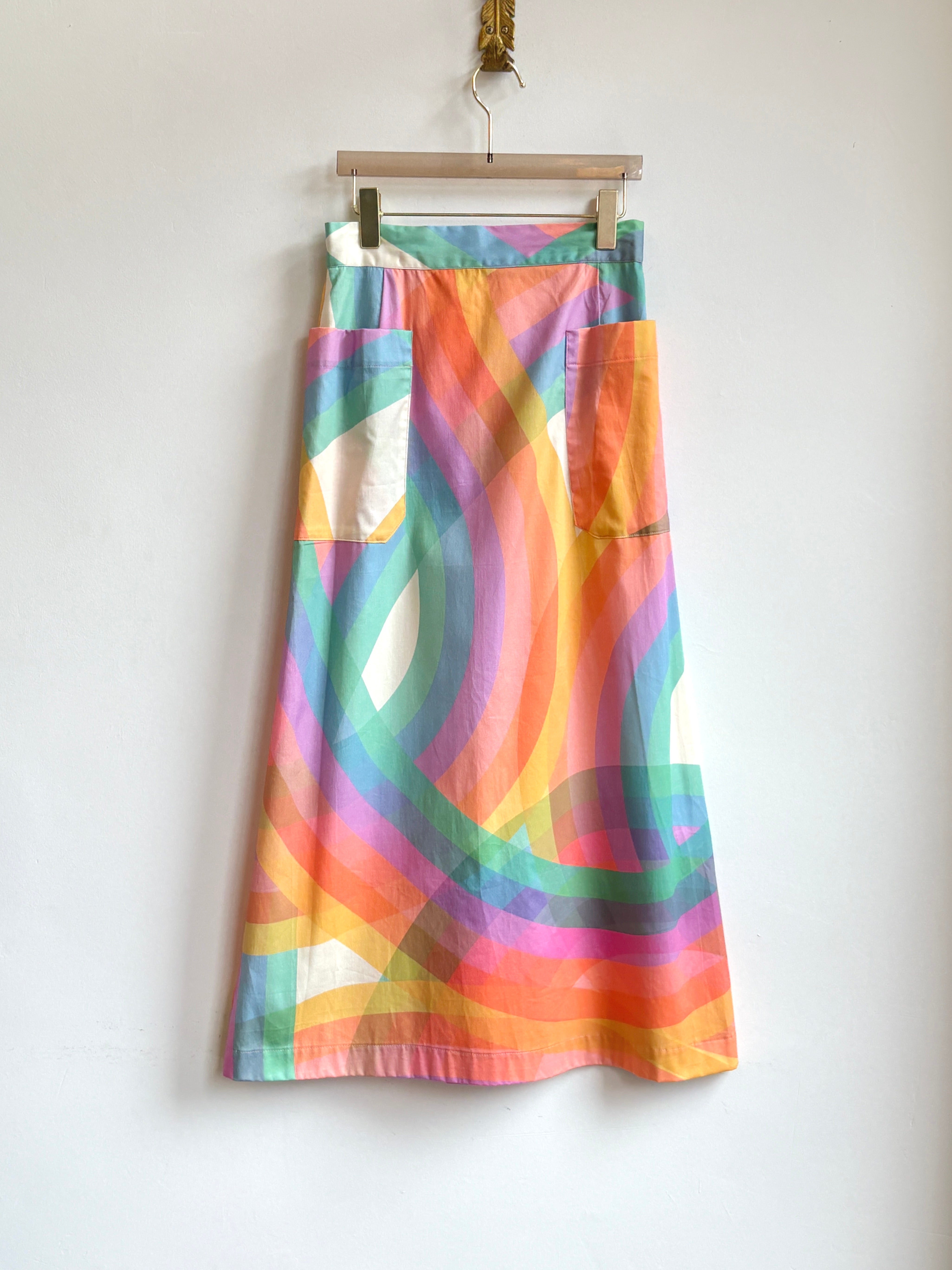 The maxi Ross skirt features a kick pleat and patch pockets. Back zipper. In a digitally printed organic cotton sateen.