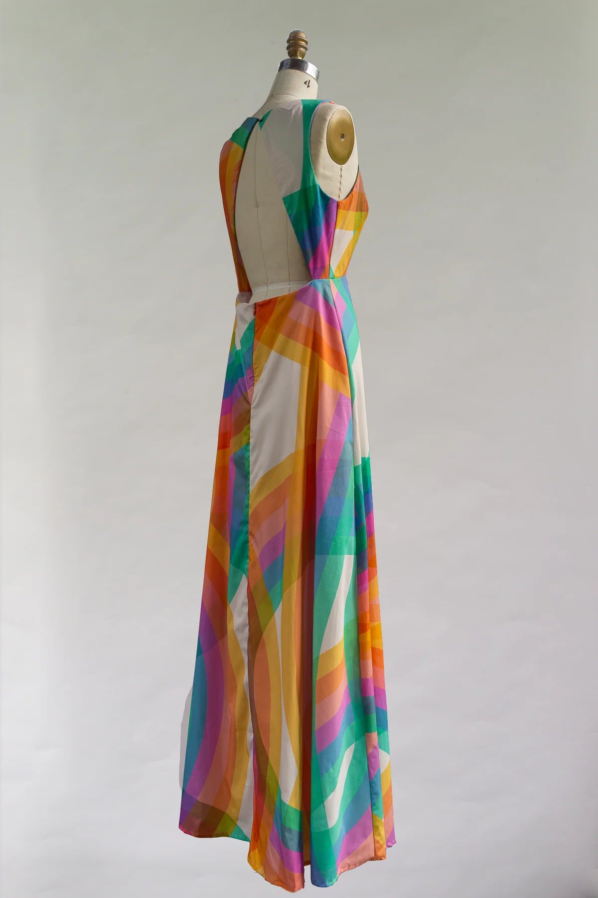 We looked at a lot of ’70s dresses to get the right combination of insouciance and glamour.