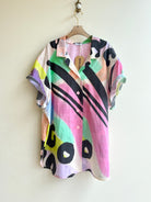 Juda Leah's version of a classic, oversized button down. Inspired by those cool, slightly crazy, shirts of the 1980's. Styled with wide, short rolled-up sleeves, finished with pink buttons because we want to have a little fun! Totally genderless, and can be styled in endless ways.