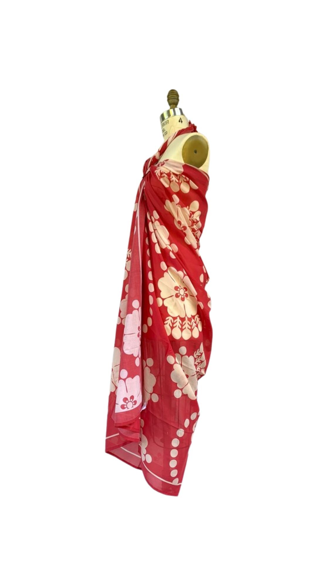 Generous, full sized Red Pareo Print Sarong. Perfect for the beach or asphalt beach. One size.