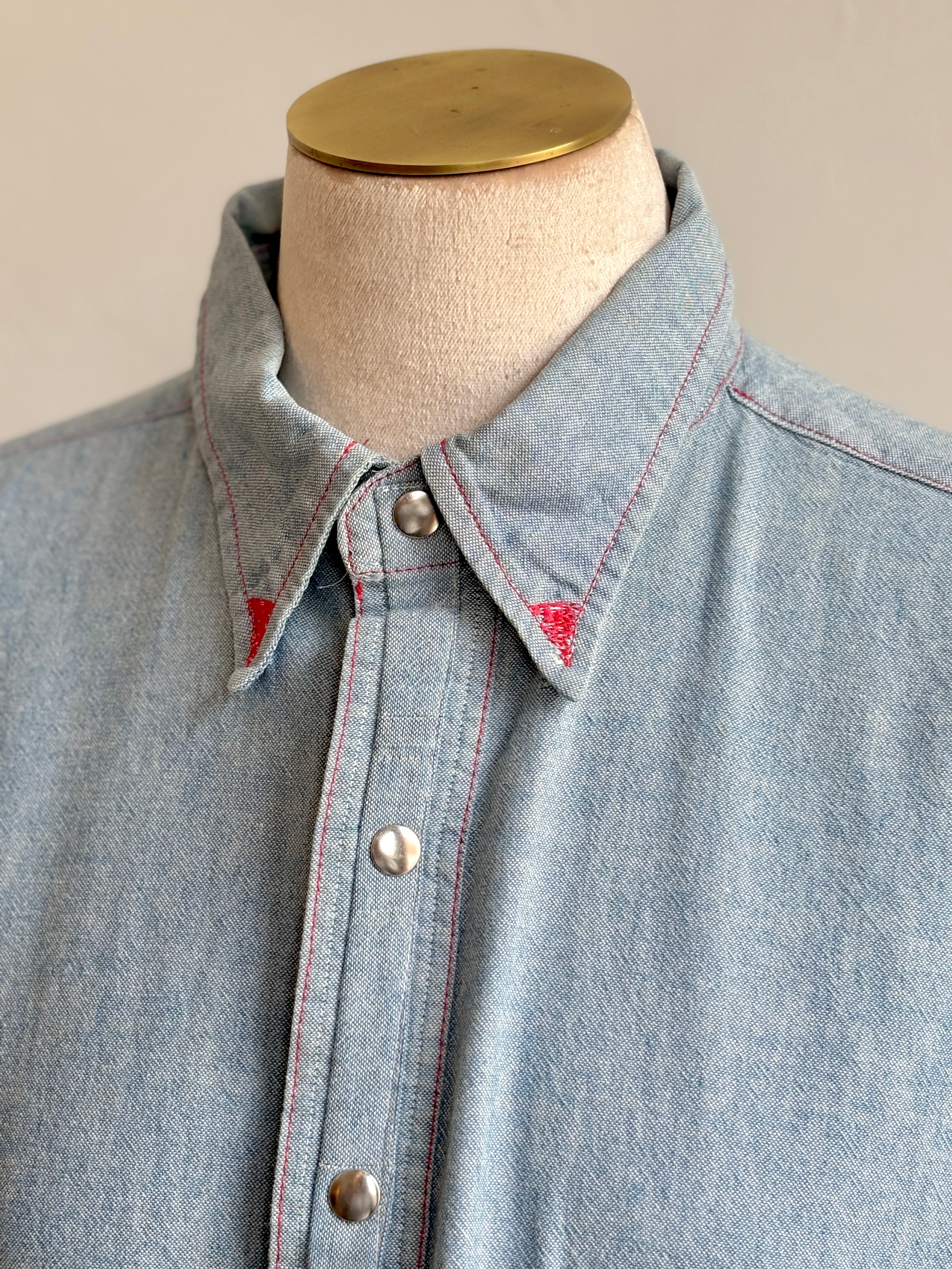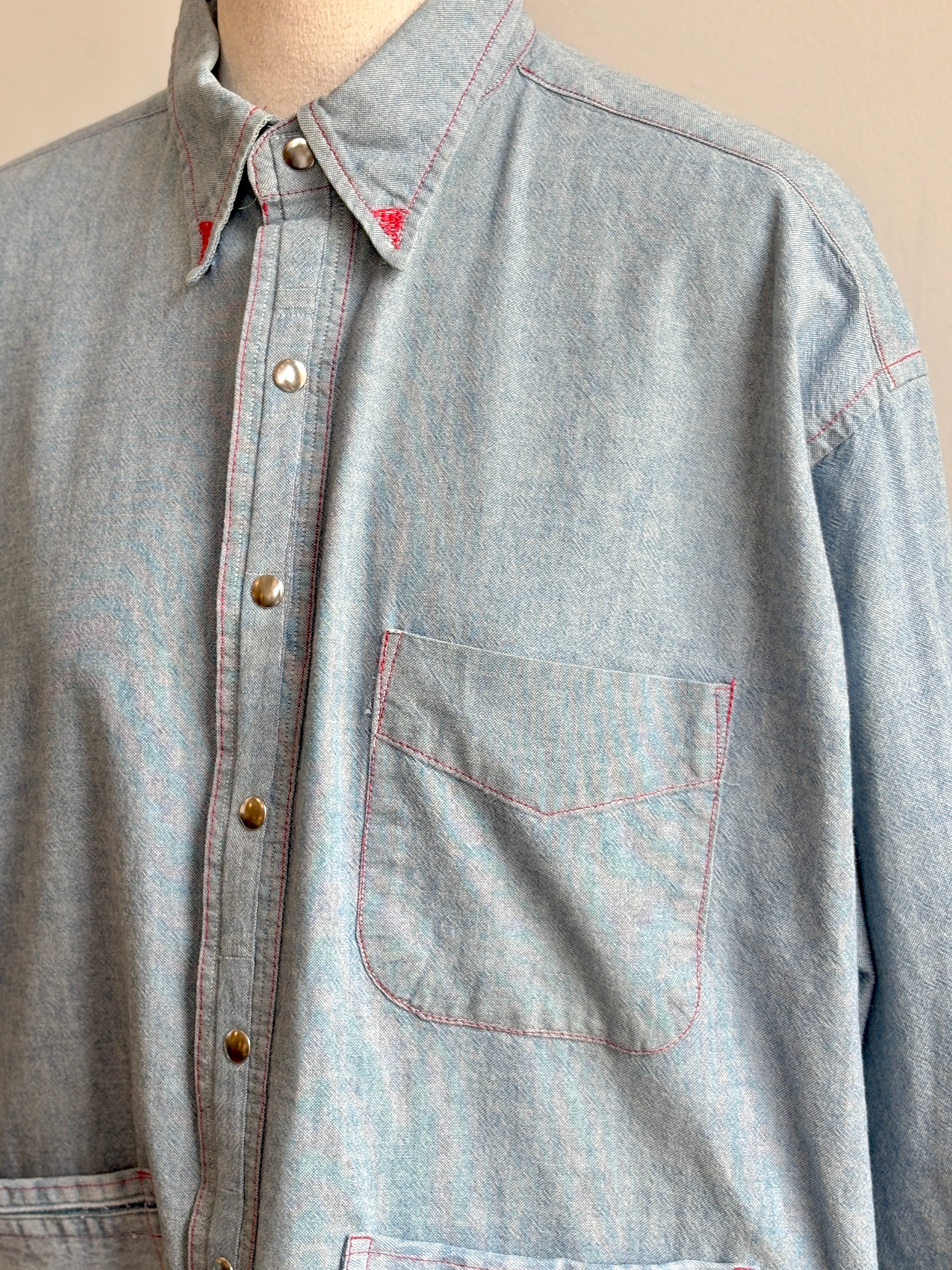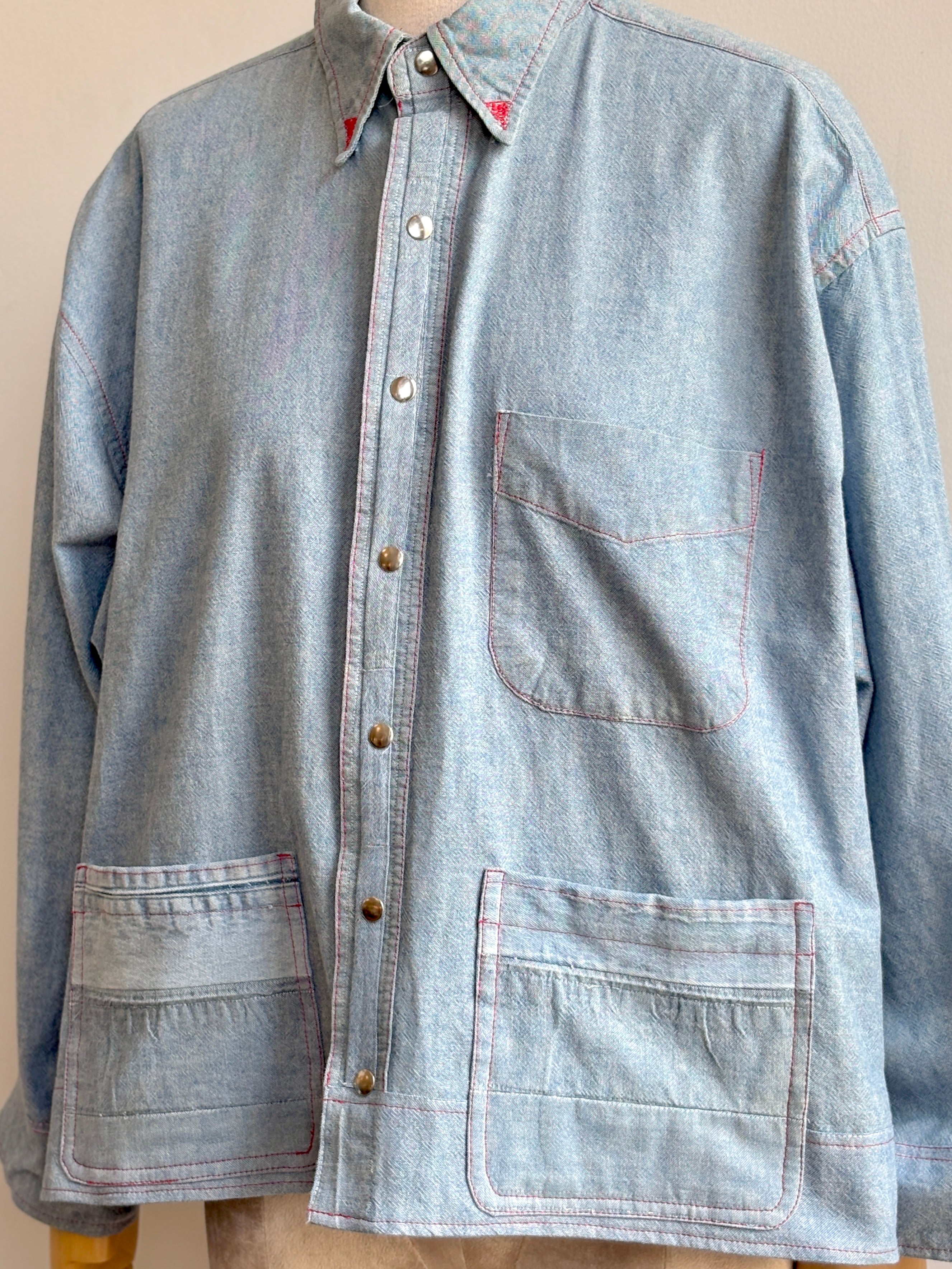 Red Top-Stitch Denim Shirtjacket (Reworked)