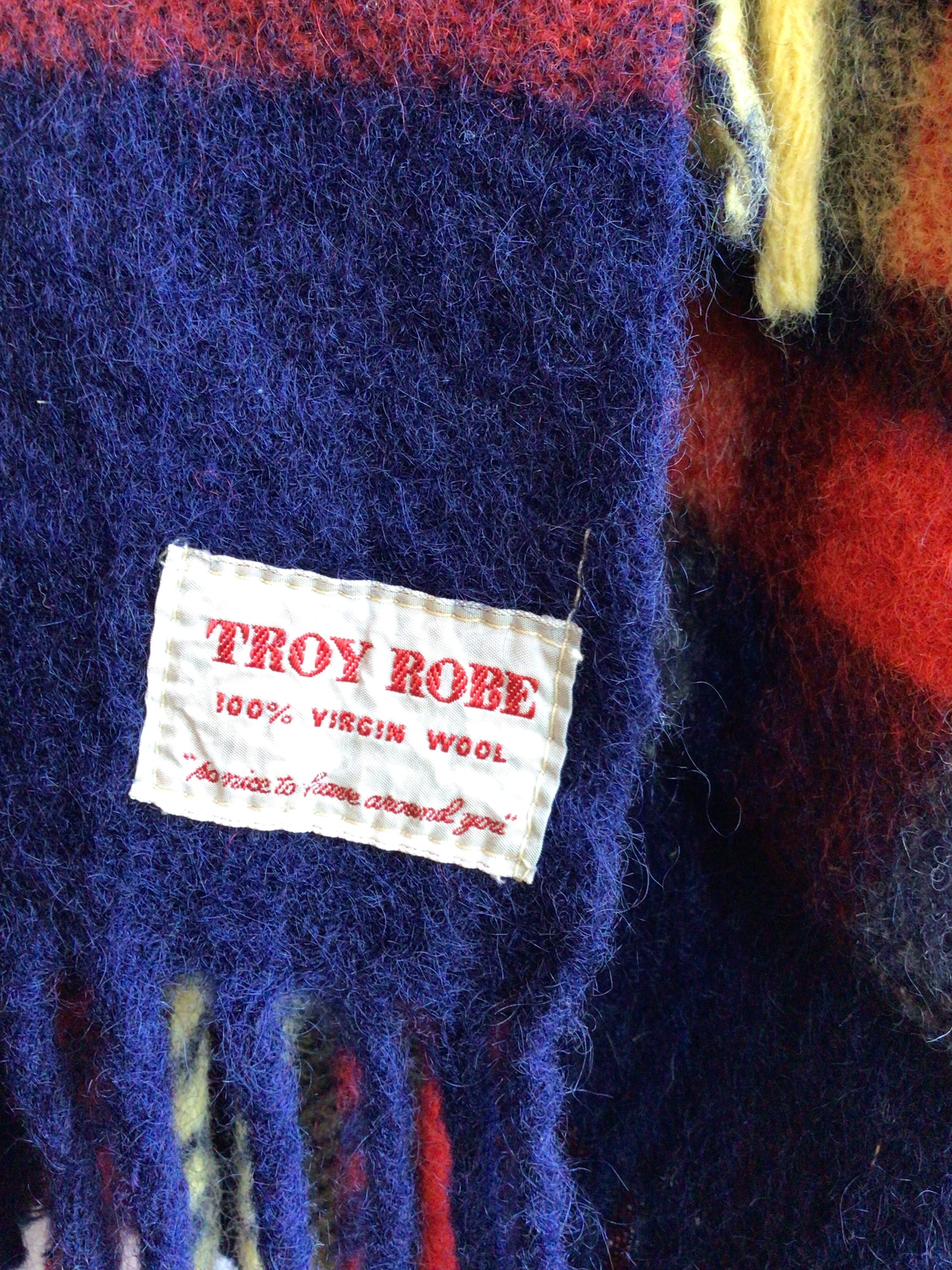 - Handmade using Vintage “Troy” Wool Fringe Blanket